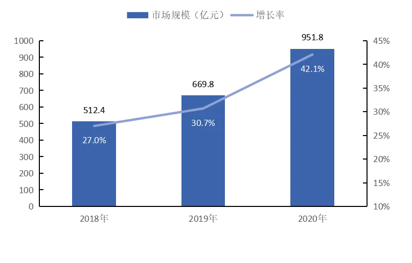 受益于相关利好政策的推动及疫情防控常态化后项目建设的逐步回暖,中国私有云行业发展势头良好。根据计世资讯统计,2020年,中国私有云市场规模达到951.8亿元,同比增长42.1%。