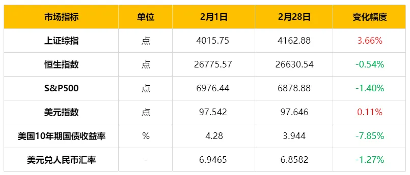 2月资本市场指标变动如下表: