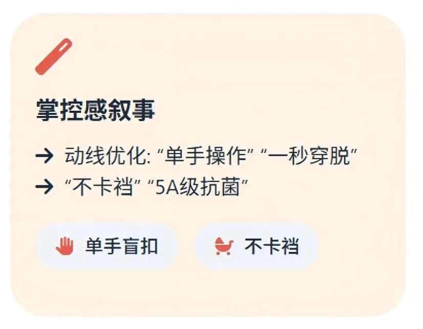 那些真正触发高溢价的营销关键词也在悄然改变:“单手操作”、“一秒穿脱”、“不卡档”、“5A级抗菌”——这些情感唤醒度超过8/10的词汇,无一例外都在描述“掌控感”。