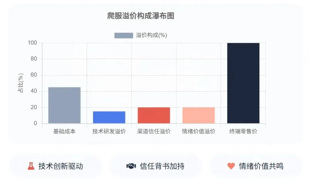 同样被忽略的还有产品的“耐用性”。大数据显示,90%的爬服在水洗10次后面料脆化率超过20%,导致衣服“越洗越硬”。对此,业内已有品牌引入液氮处理工艺,通过-196℃急冷定型,从根本上解决面料衰减问题。未来,构建技术壁垒或将成为爬服品牌产品重点发展趋势之一。