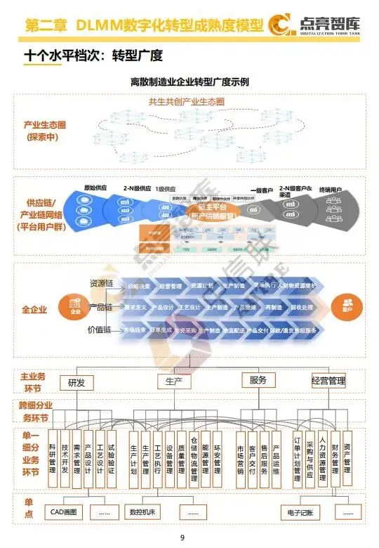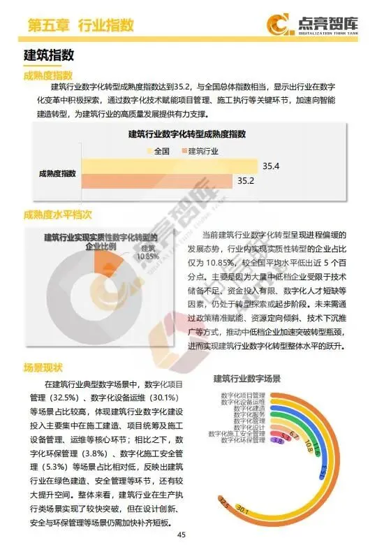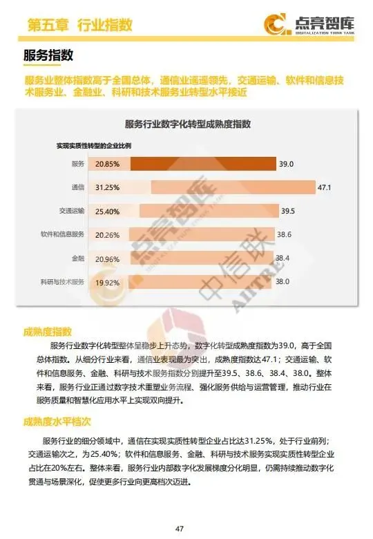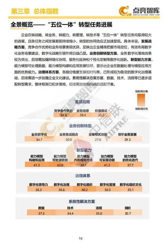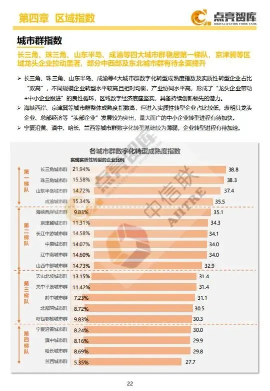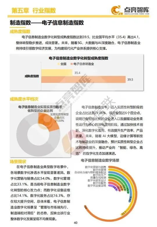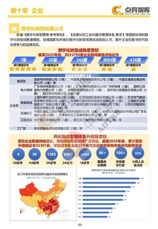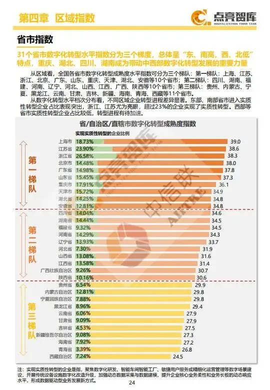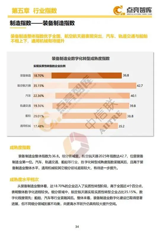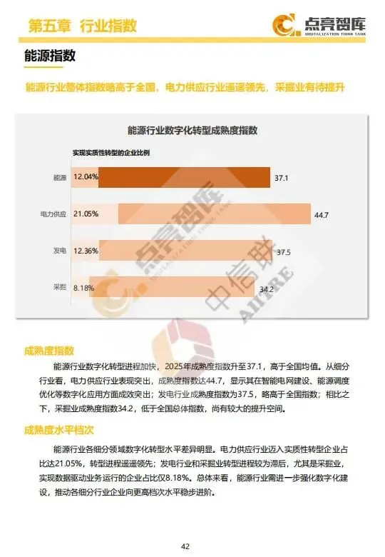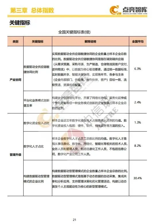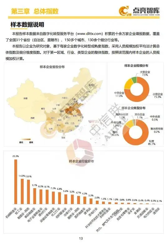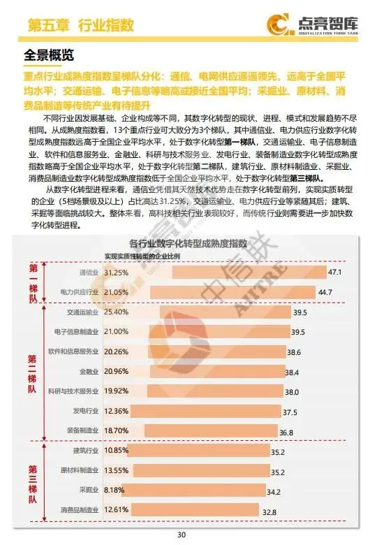 2025年,企业数字化转型进入全面深化阶段。随着新一轮科技革命和产业变革加速推进,数字经济成为推动经济高质量发展的核心动力。企业数字化转型已从“可选项”转变为关乎生存与竞争力的“必选项”,在人工智能等新技术驱动下,迈入“数智化”新阶段。报告基于DLMM数字化转型成熟度模型,结合全国31个省(自治区、直辖市)、涵盖19个国民经济门类、93个大类及381个中类的10万余家企业样本,构建了总体指数、区域指数、重点行业指数、国有企业指数和中小企业指数五大核心成果,系统呈现我国企业数字化转型的发展现状与趋势。2025年我国企业数字化转型整体处于“全面深化”期,超过15%的企业已进入实质性转型阶段。企业在人工智能应用、数字化场景落地、数据要素价值释放等关键领域展现出积极实践态势。通过系统性研究框架,报告旨在揭示数字化转型规律,科学量化发展水平,为政策制定提供依据,为企业转型提供方向指引。报告依托DLTTA数字化转型架构与方法体系,以及ITU-T Y.4906国际标准和GB/T 45341—2025国家标准,构建了覆盖全要素、全过程的诊断对标体系,支持企业全面掌握自身转型状态,识别短板,明确发展方向,系统规划转型路径。