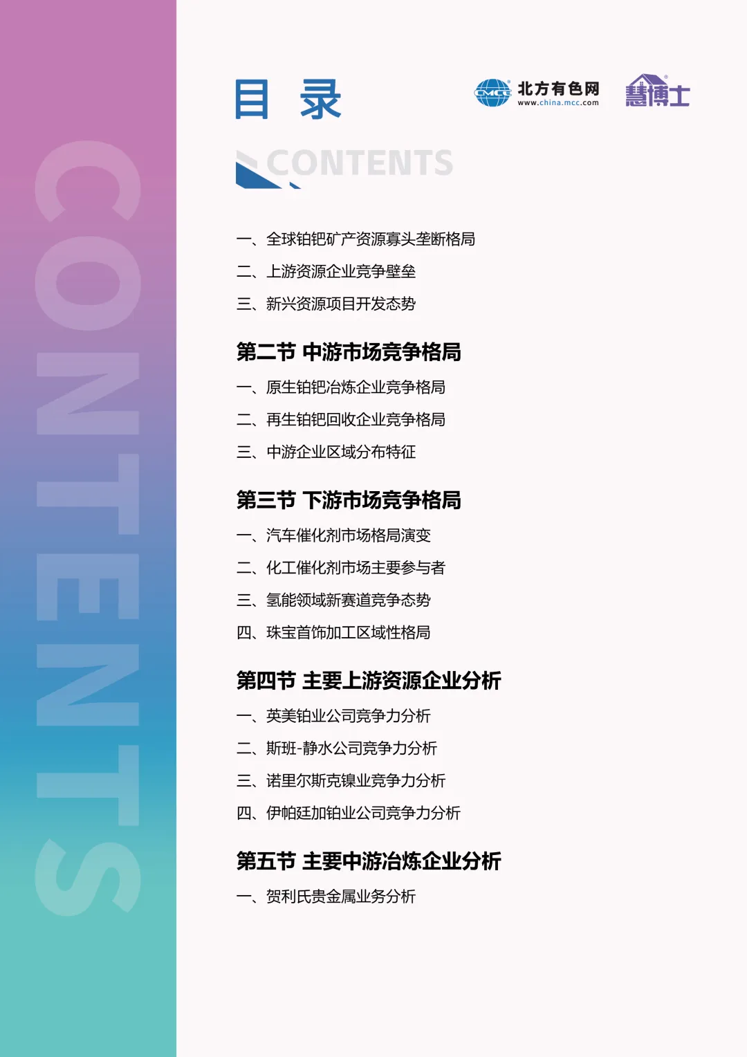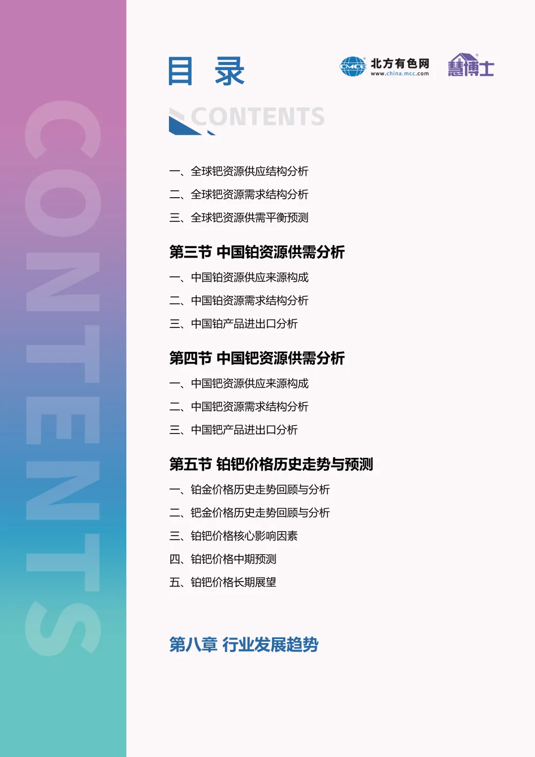 我们期望这份全景式、前瞻性的研究报告,能够为产业内的战略决策者、政策制定者及投资者提供一份可靠的导航图,共同促进中国乃至全球铂钯产业迈向更高质量、更可持续的发展新阶段。