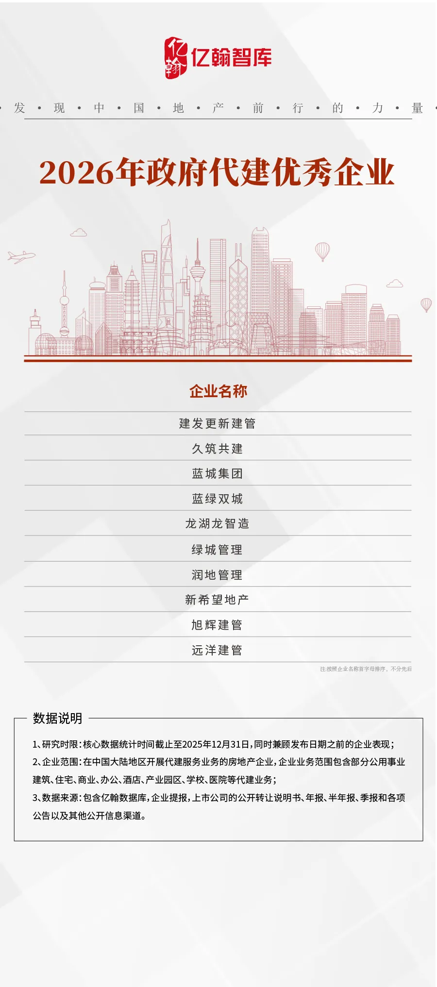 2026年,“广撒网”的扩张模式适用率降低,深度绑定高综合竞争力城市、打造区域壁垒,成为行业新生存逻辑。强深耕能力,本质是代建企业将自身专业能力与城市发展需求深度融合,通过模式创新实现区域市场的平稳健康发展局面。