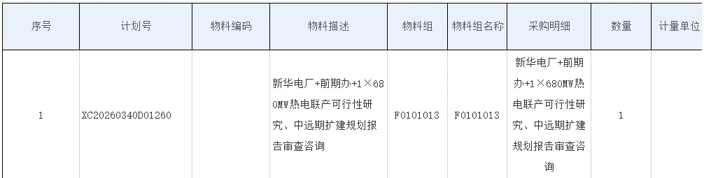 近日,华能集团发布华能黑龙江分公司新华电厂“上大压小”1×680MW热电联产项目可行性研究报告、中远期扩建规划报告审查咨询服务(8905-1)询比采购公告,采购编号:HNFZ2026-03-2-01885。