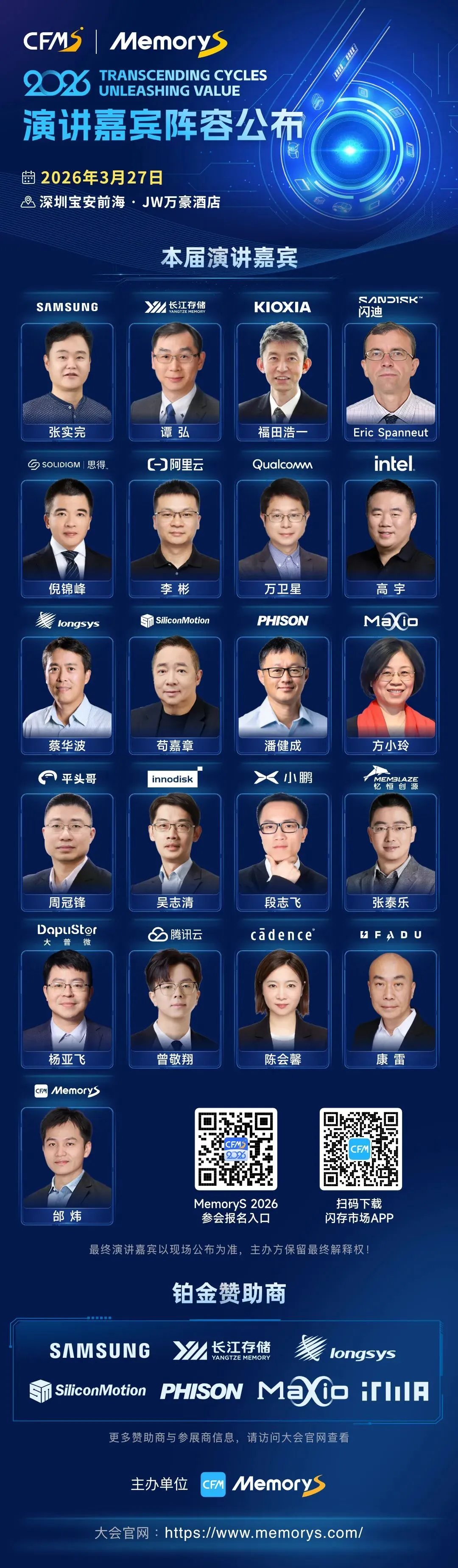 3月27日,CFMS|MemoryS 2026将以“穿越周期,释放价值”为主题在深圳前海JW万豪酒店举行,报名通道已开启,可通过峰会官网(https://www.memorys.com/)或“闪存市场”APP进行报名。