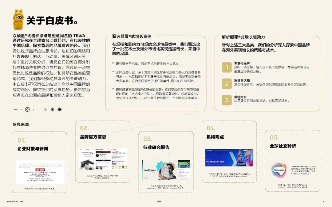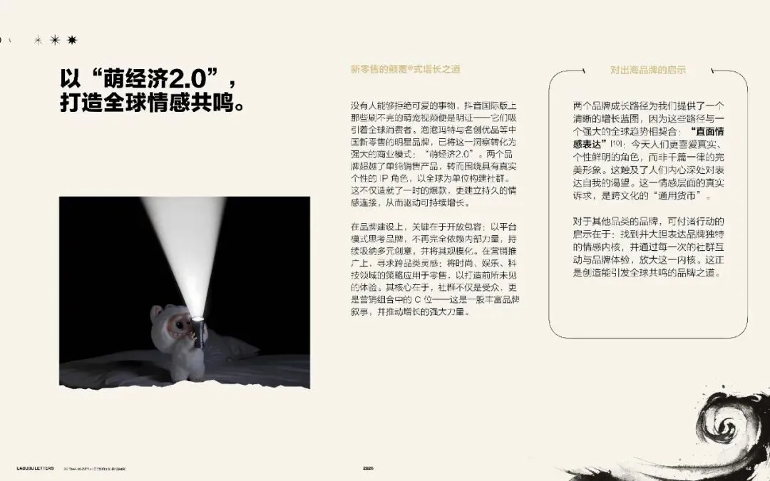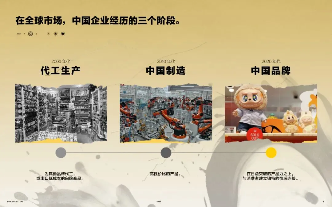 本白皮书,将通过分析泡泡玛特及其他多个品类中崛起的中国品牌,解码其颠覆式增长的路径给我们带来的启发一一这些中国品牌正在共同塑造一个新的阶段:从曾经的“中国制造”,到今天的“中国品牌”。