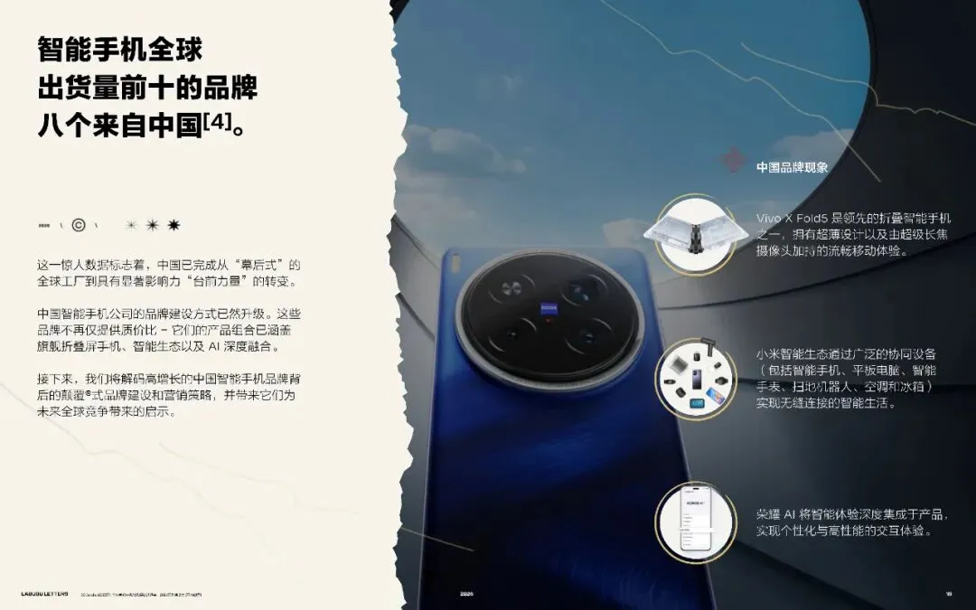 中国智能手机公司的品牌建设方式已然升级。这些品牌不再仅提供质价比——它们的产品组合已涵盖旗舰折叠屏手机、智能生态以及AI深度融合。