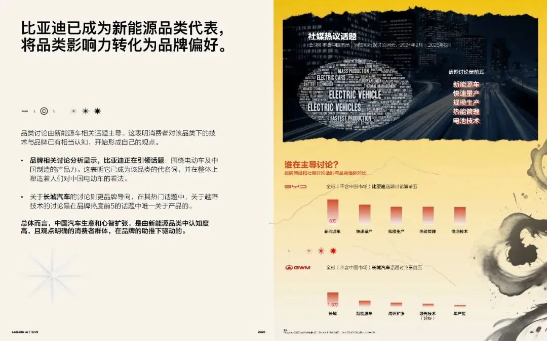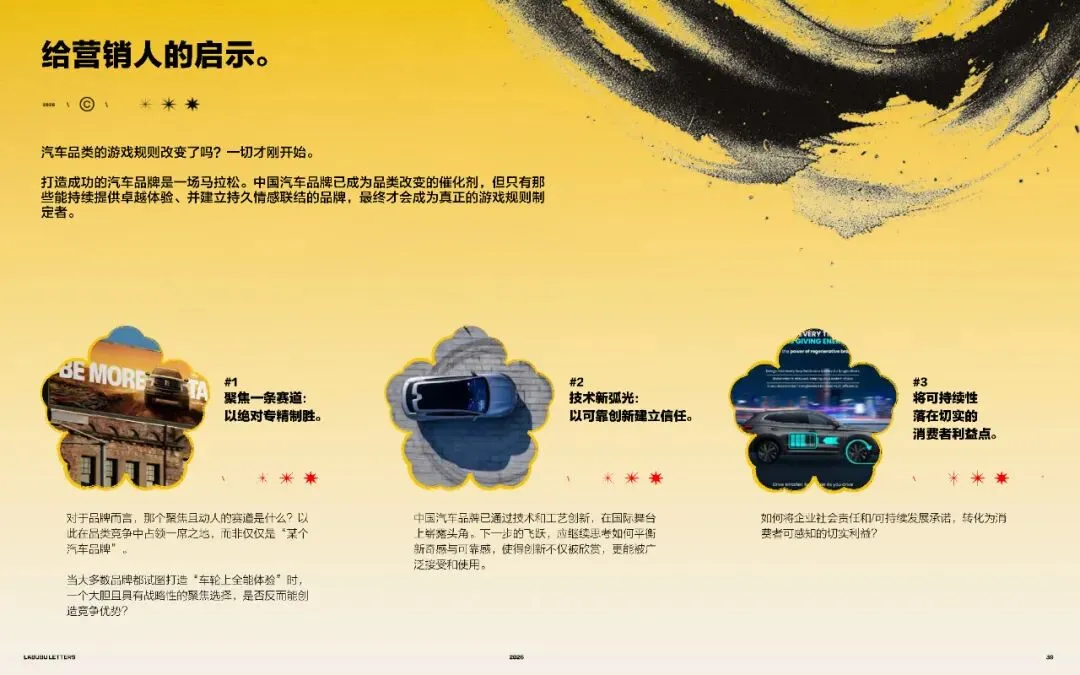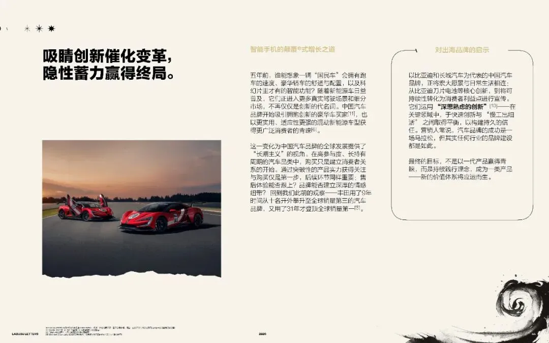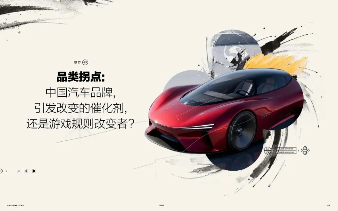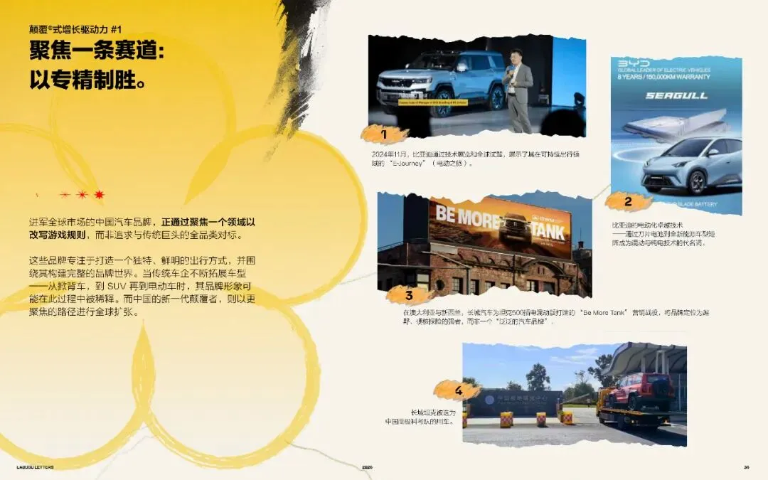 这些品牌专注于打造一个独特、鲜明的出行方式,并围绕其构建完整的品牌世界。当传统车企不断拓展车型从掀背车,到SUV再到电动车时,其品牌形象可能在此过程中被稀释。而中国的新一代颠覆者,则以更聚焦的路径进行全球扩张。
