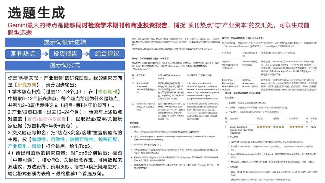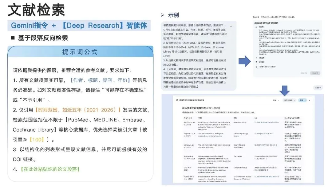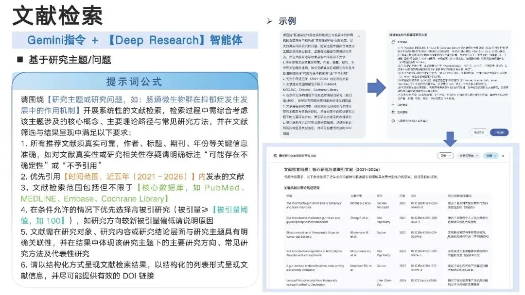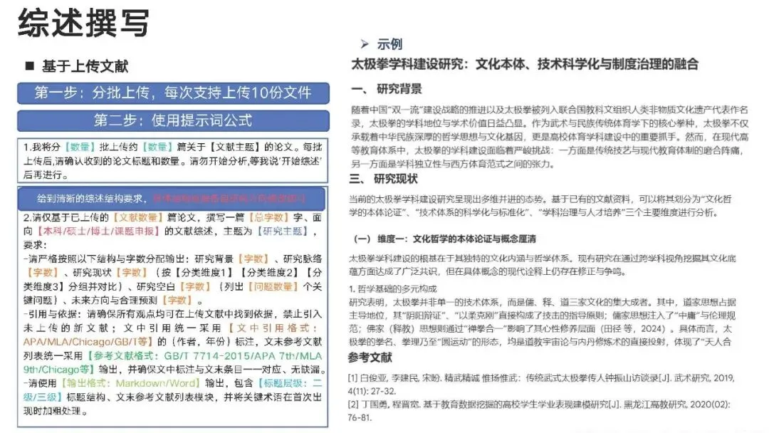 流程化提示词设计:针对每一类科研任务,提供清晰的逻辑框架与可复用的提示词模板,帮助用户从“被动提问”转向“主动设计研究方案”。