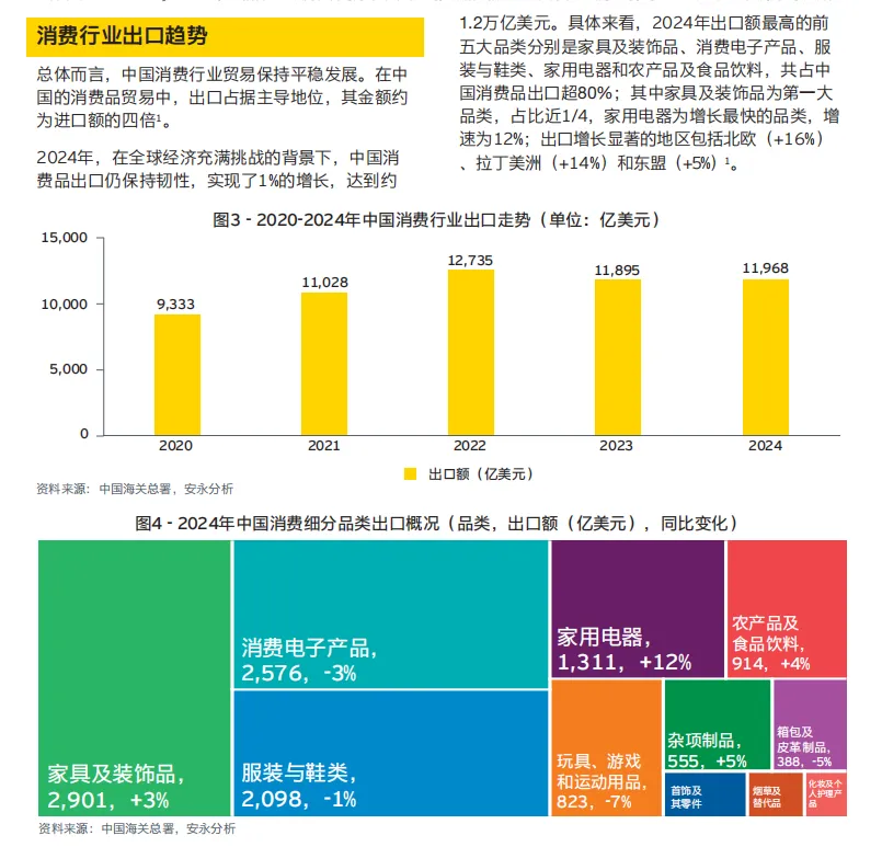 消费品出海面临关税壁垒、跨境税务合规、海外布局复杂的挑战;建议深耕新兴市场,强化合规运营,加速供应链本地化与数字化转型。