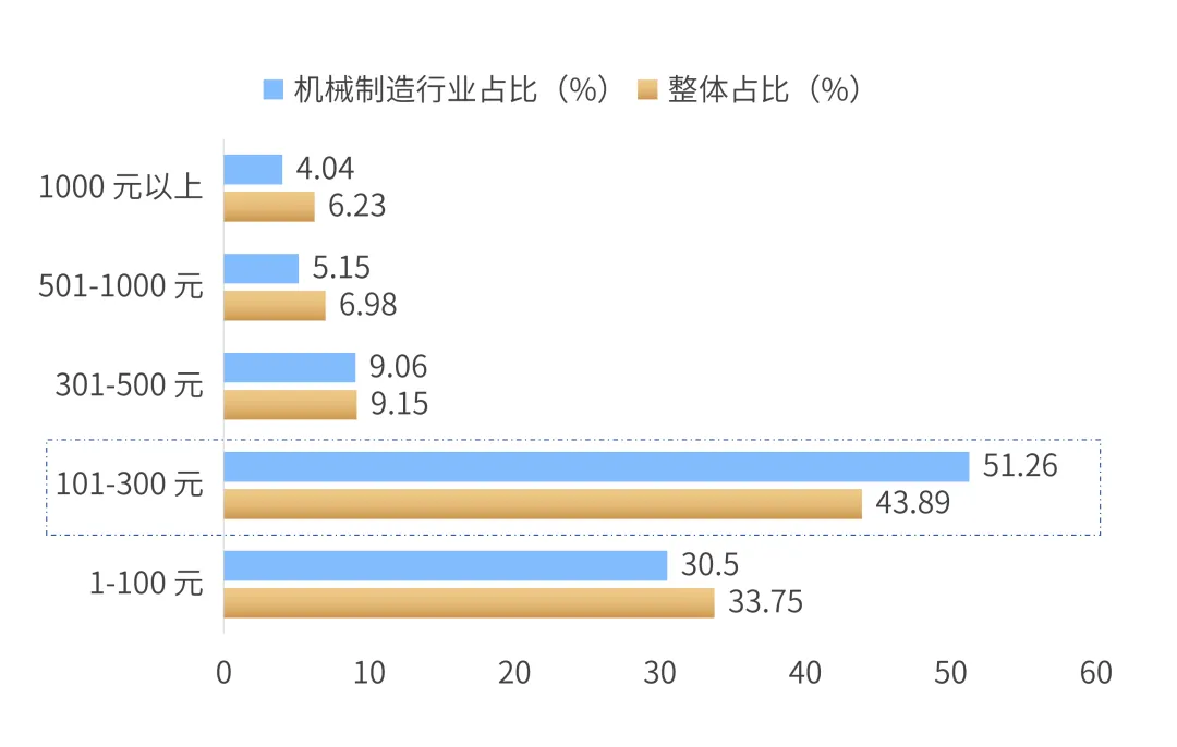 从单次消费单价来看,机械制造行业员工呈现明显的高性价比偏好。单次消费在101–300 元中档价位的占比显著高于整体水平,超半数员工单次消费集中在此区间;建议企业重点丰富101–300 元单价段的高性价比商品与兑换场景。