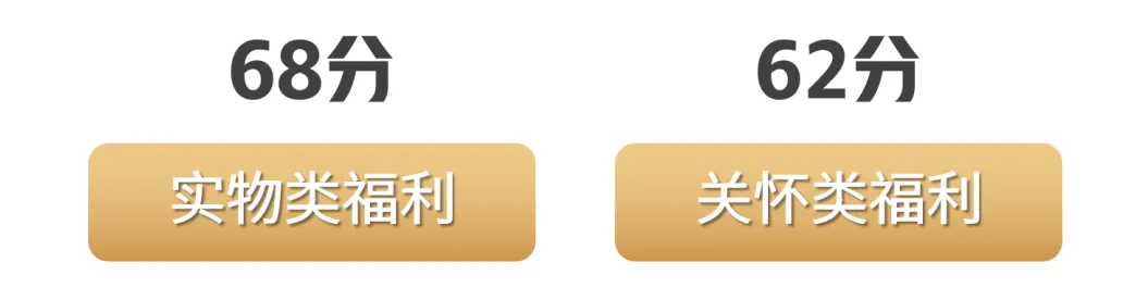 实物福利(68分)中等水平,而关怀类福利(62分)较低,且与实物福利形成6分的明显差距,强力印证了该行业在“软件”投入上的不足。