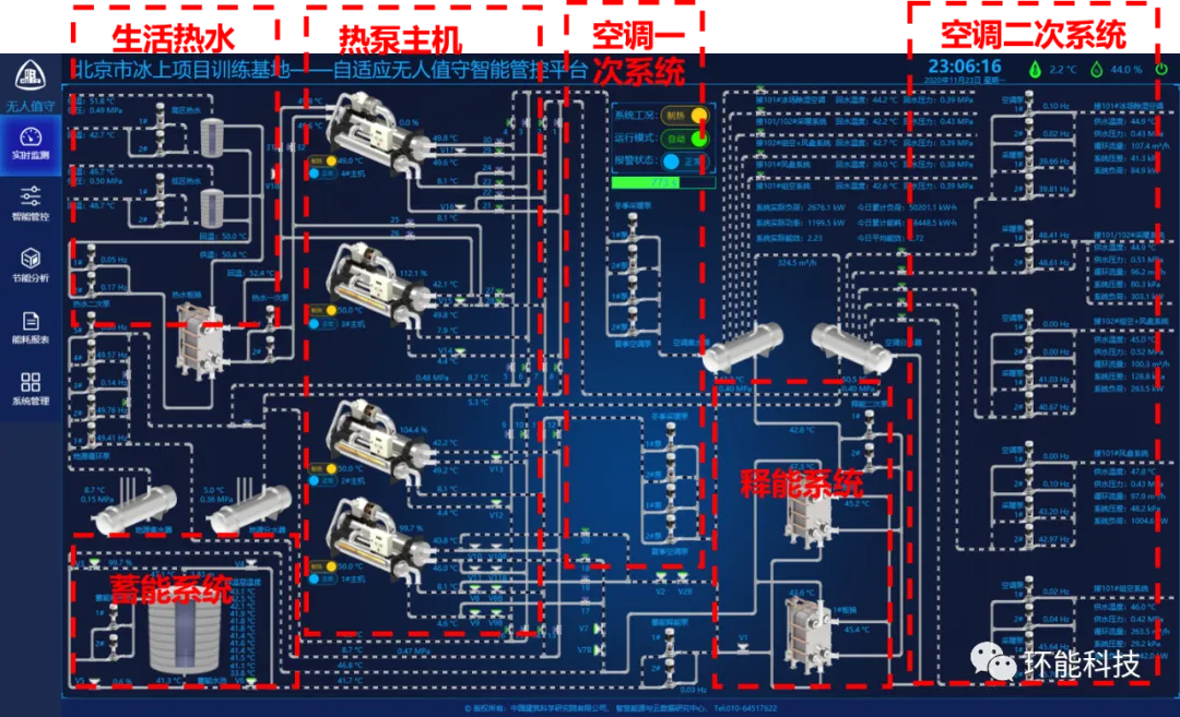 该系统于2020年调试完成并正式投入运行。项目采用自适应无人值守模式实现对“地源热泵+水蓄能”系统的一键启停、按需匹配、自适应运行调节、故障诊断、预测运行等全动态自动化智慧运行功能,保障系统的安全、稳定、高效运行。