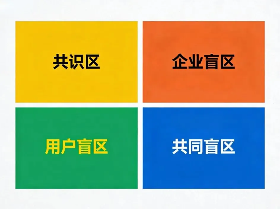 用户盲区:企业知道但用户不懂,属于营销传播问题,不是调研核心
