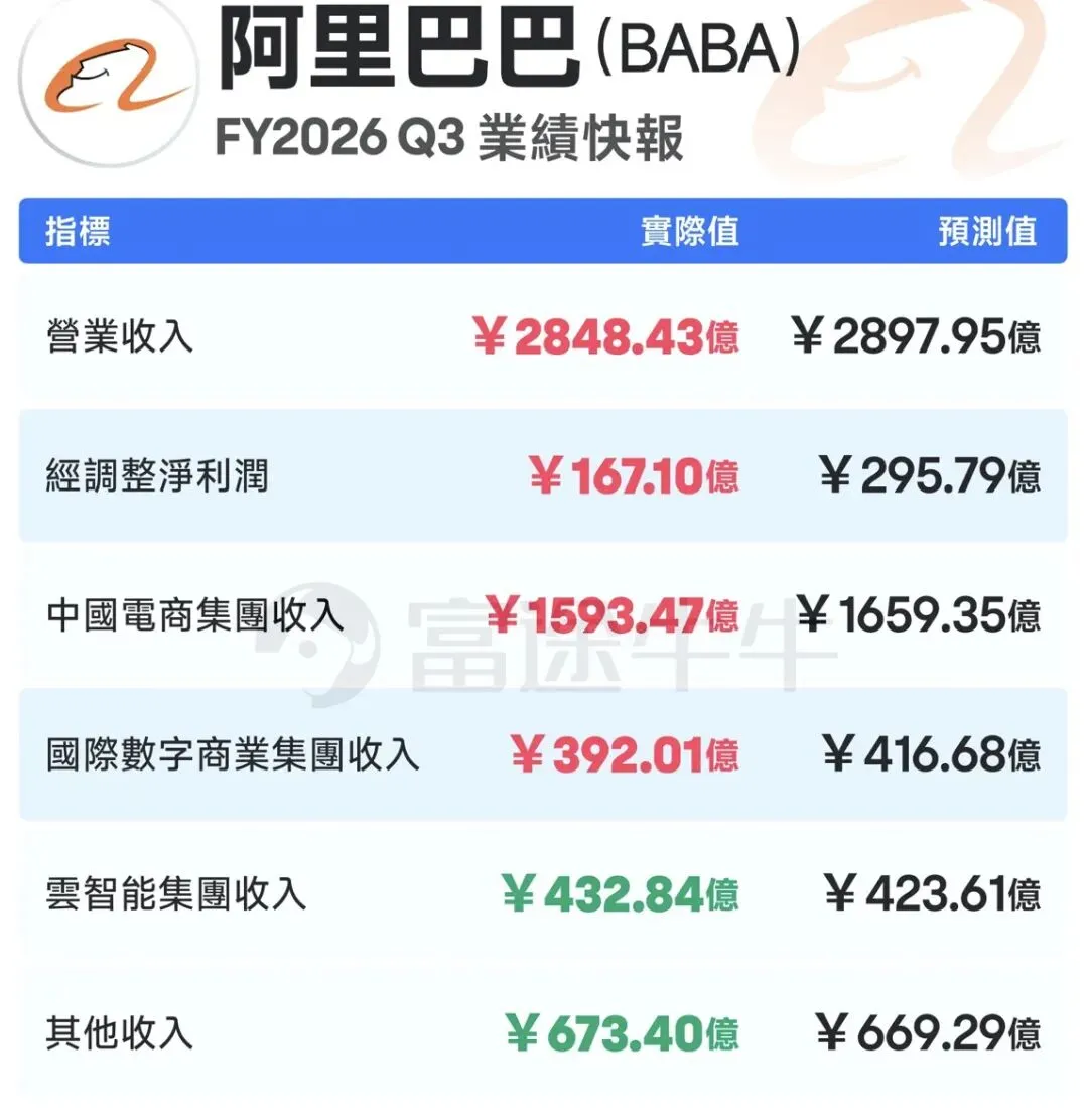 市场短期显然不太买账。财报发布后,市场对于“收入低于预期、利润承压”的担忧快速放大,阿里股价也承受了一定压力。