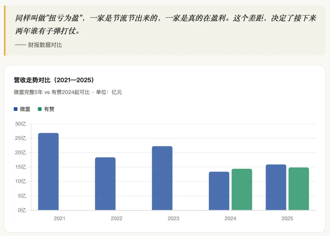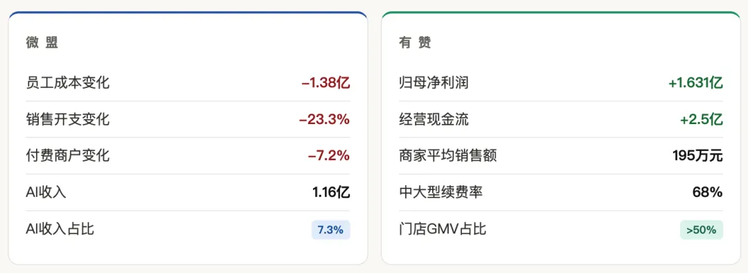 数据来源:有赞2025年年度业绩报告、微盟集团2025年年度财报。图表数据经整理,部分为估算值。本文仅供参考,不构成投资建议。