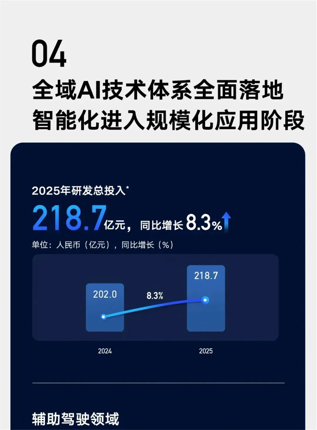 光有完善的品牌矩阵还不够,核心技术的重金投入,才是吉利业绩增长的坚实壁垒。2025年作为“智能吉利2025”战略收官之年,吉利将研发作为核心竞争力,投入176.24亿元重点布局智能电动、全域AI等领域。电动化方面,插混、纯电、i-HEV双擎多路线并行,计划为中国星系列搭载i-HEV技术,将百公里油耗降至3L;智能化方面,吉利率先发布行业首个全域AI技术体系,2026年迭代至2.0版本,推出可自我反思进化的WAM世界行为模型,打造“整车大脑”,提升智能化竞争力。同时,提高研发费用化率,让利润更真实,也为后续技术转化预留空间。