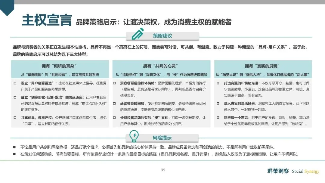 契约重构的第二个核心,是消费者消费主权的全面觉醒,也就是主权宣言的市场趋势。经济压力之下,个人的成就感和价值感,在日常生活中变得越来越难以获取。于是消费者开始希望,在和品牌的沟通与关系中,能获得更多的声量和权力,让自己的需求和主张被看见,让自己使用的语言被听见,让自己的不完美被理解和接纳,最终在消费行为里,获得自身价值感的印证。