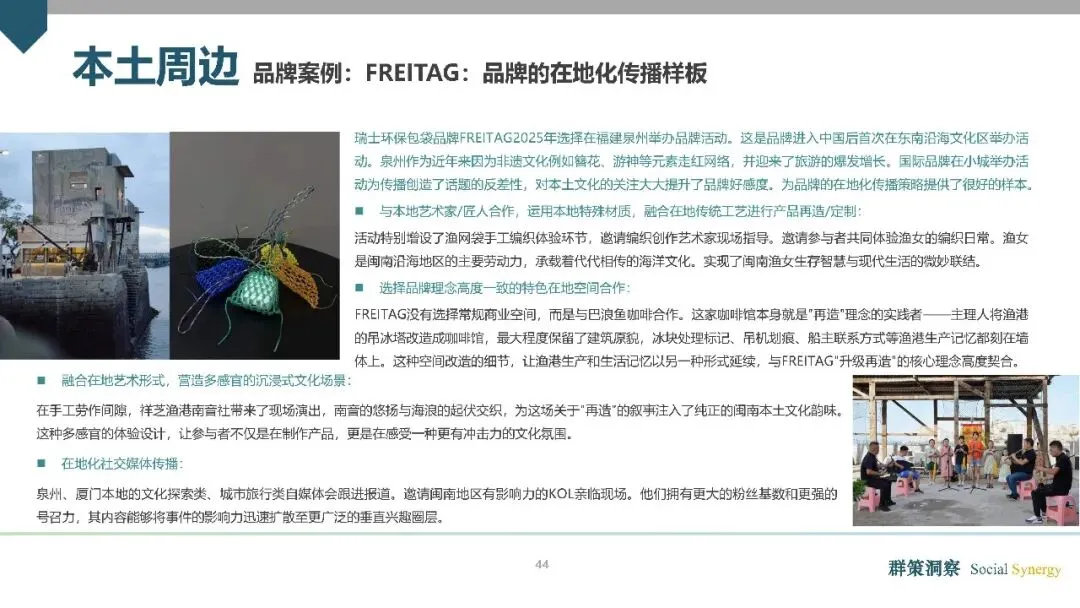 这种转向的背后,是消费者对真实、可触摸的消费体验的强烈渴望。网购带来的虚拟浏览,永远无法替代亲手触摸商品质地、嗅闻食物香气、和摊主面对面交流的真实触感,这种人与人之间的直接交流,也是标准化的购物中心无法复制的。而品牌的本土化,也不再是简单的在产品上贴一个地域标签,而是要真正深入本土文化,和本地的创作者、匠人、空间深度合作,挖掘本土文化里的情感内核,和本地消费者产生真正的共鸣。消费在这里,不再是对远方生活的模仿与向往,而是人们重新认识自己生活的城市、连接本土文化、发现附近美好的方式。