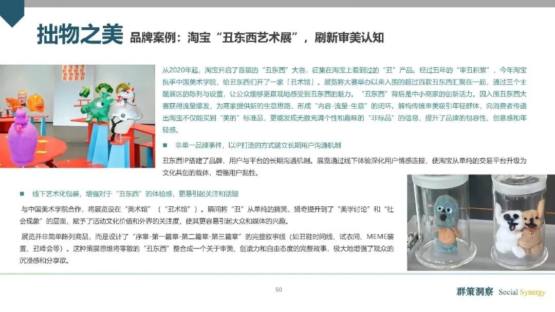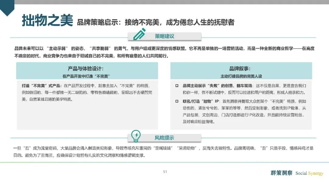 内在秩序重建的第三个层面,是个体与自我的和解,也就是拙物之爱的审美与消费转向。当社交媒体和消费主义长期营造的完美形象,带来了普遍的审美疲劳与心理压力,大众的审美正在发生一场温和的反叛。人们对精致、完美、无懈可击的形象逐渐失去兴趣,反而开始在不完美里,找到治愈的力量。那些带着笨拙、丑萌、呆滞、脆弱特质的内容与产品快速走红,背后是消费者对自我接纳的强烈需求。消费者在消费这些不完美的事物时,本质上是在和自己的不完美和解。