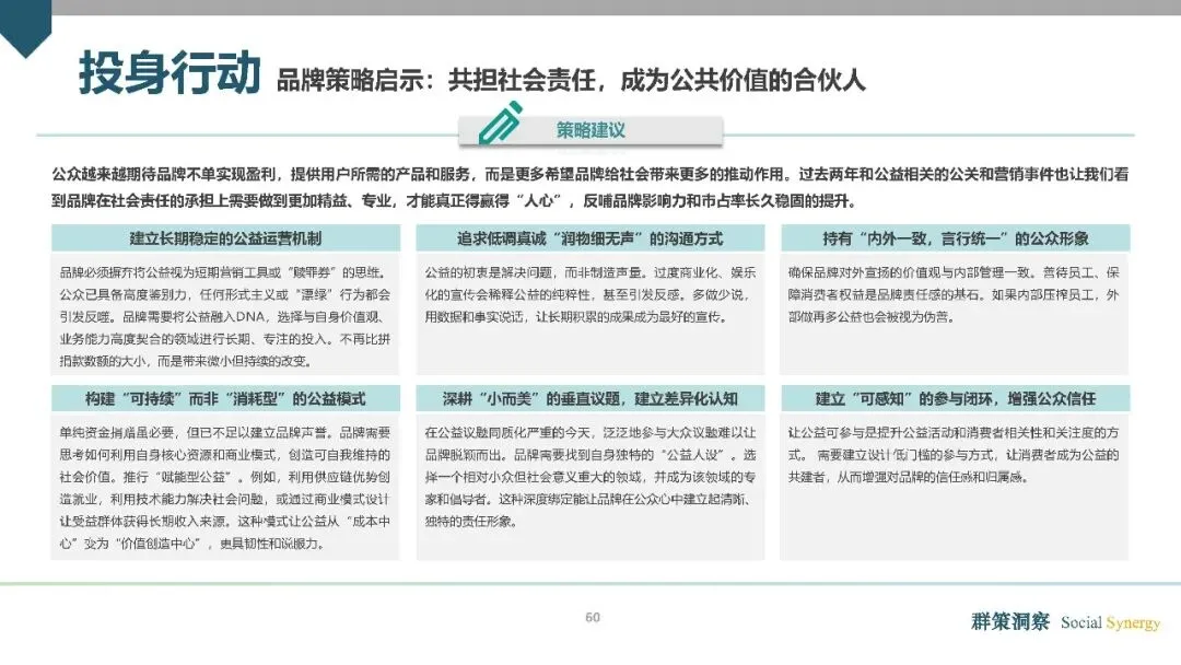 契约重构的最高层面,是消费者对商业公共价值的共同追求,也就是投身行动的消费趋势。经历了市场经济的高速发展,社会对单纯追求利润最大化的商业模式,已经开始了全面的反思。大众期待的,是一种更健康、更可持续的商业模式,承担起更广泛的社会责任,正在成为品牌长期发展的必选项。