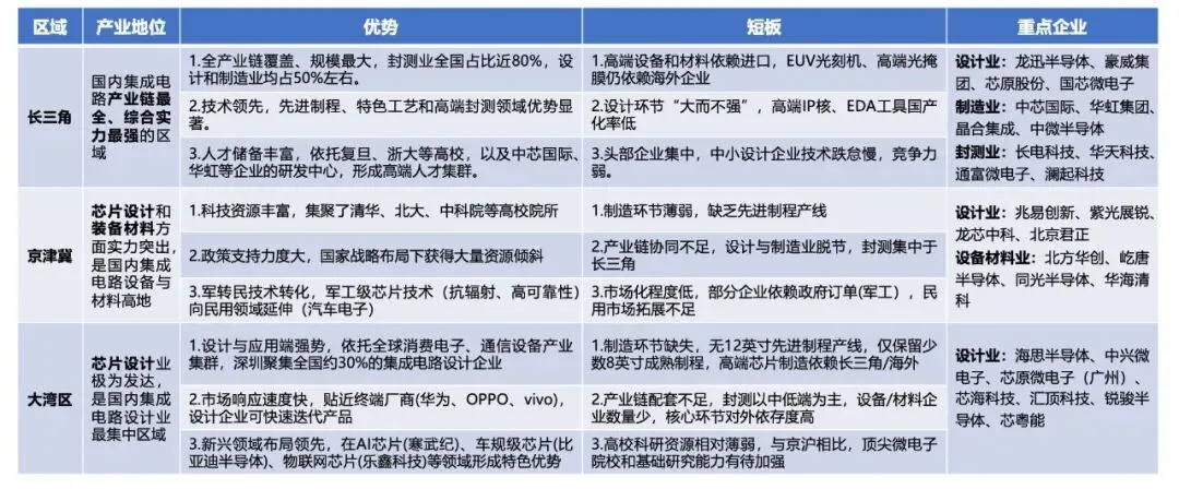 目前,国内集成电路产业主要形成了长三角、京津冀、大湾区三大核心区域,各有侧重、协同发展。