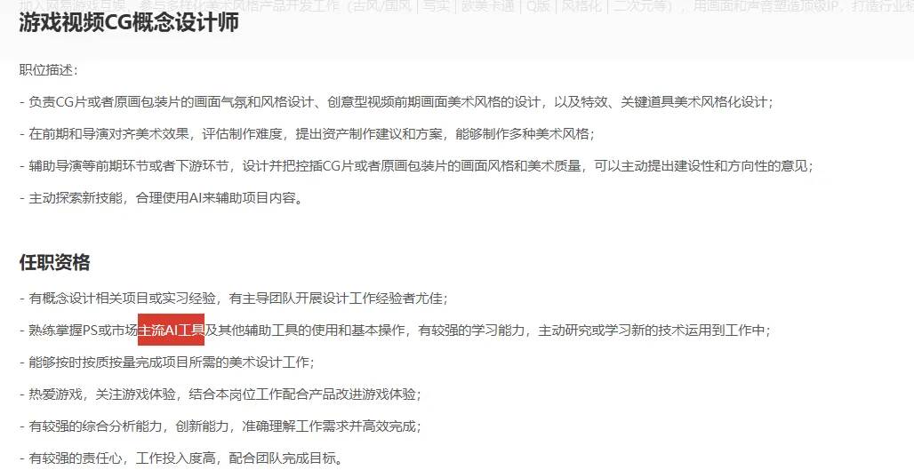 腾讯、网易、完美世界等游戏大厂都要求设计师能在工作场合中熟练使用AI。