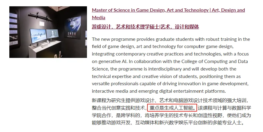 这是南洋理工专为培养AI+游戏人才开设的新专业。