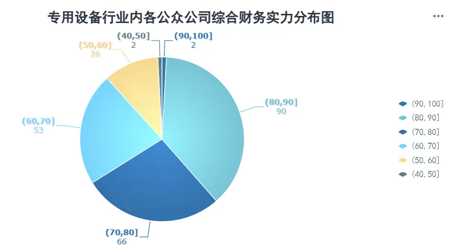 专用设备行业所有公众公司综合财务实力统计均值为74.42,极差值为46.99,标准差10.18。