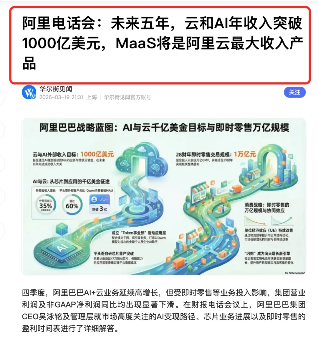 阿里今天发了财报,云和AI增长强势,新闻上都有就不过多赘述了,关键还是阿里电话会上的内容,基本上理清了未来的发展思路和接下来的重点战略目标。