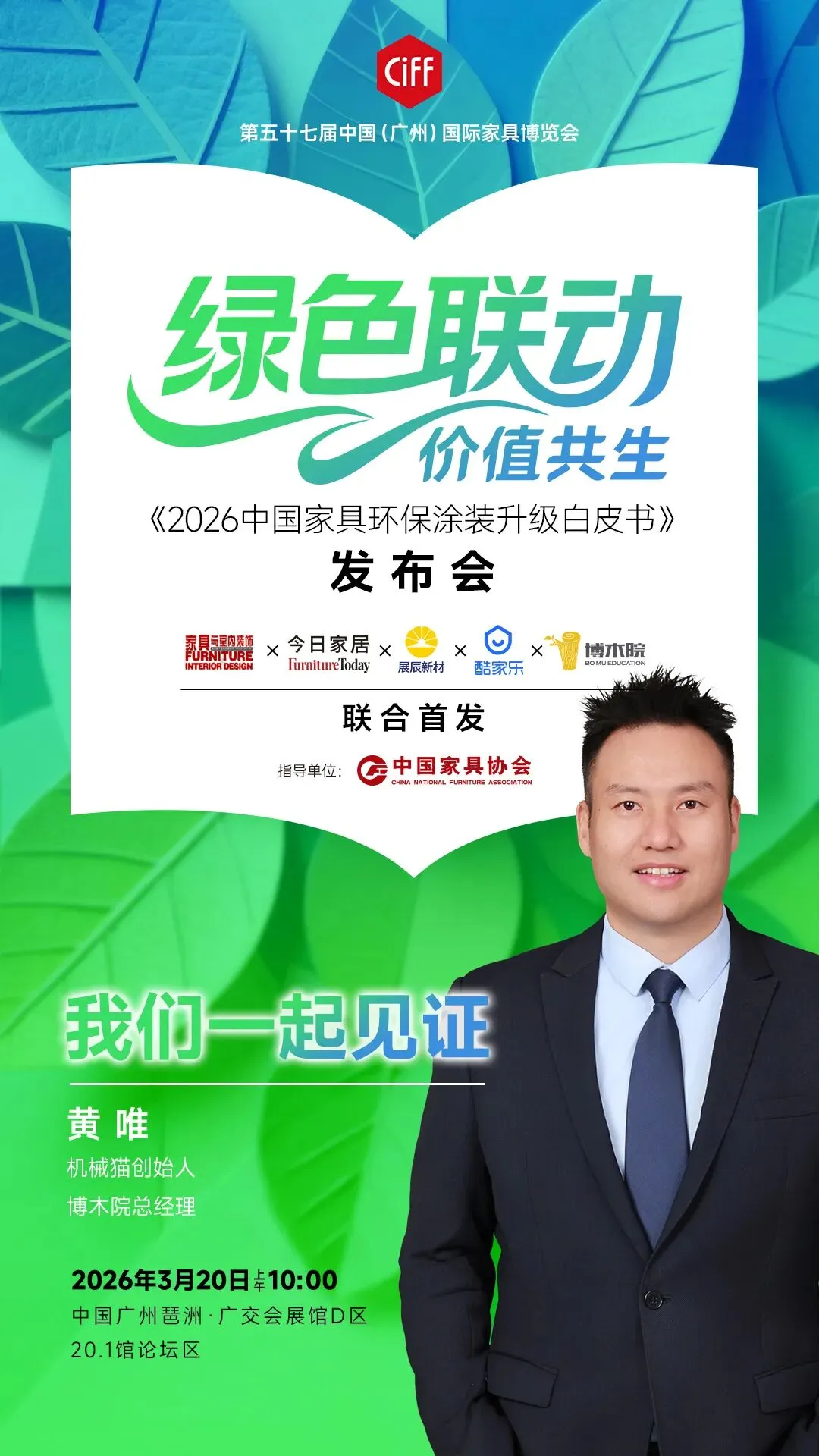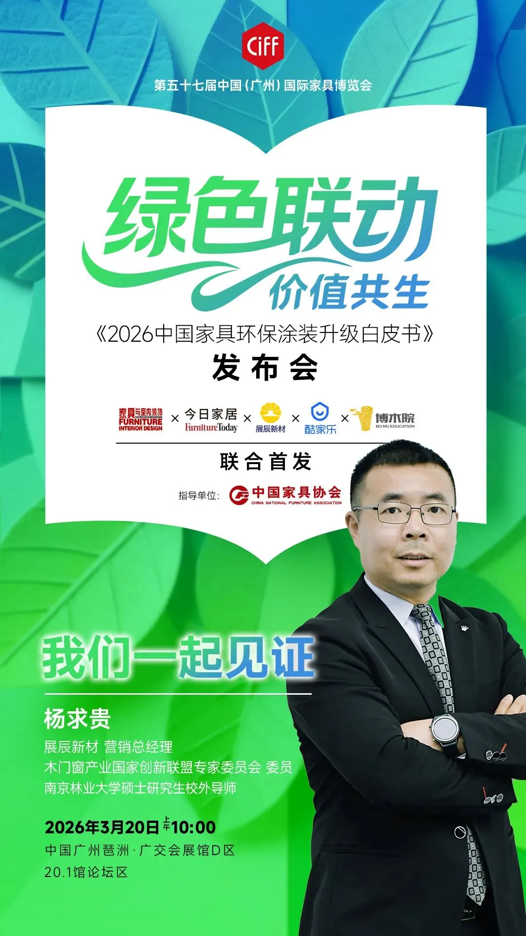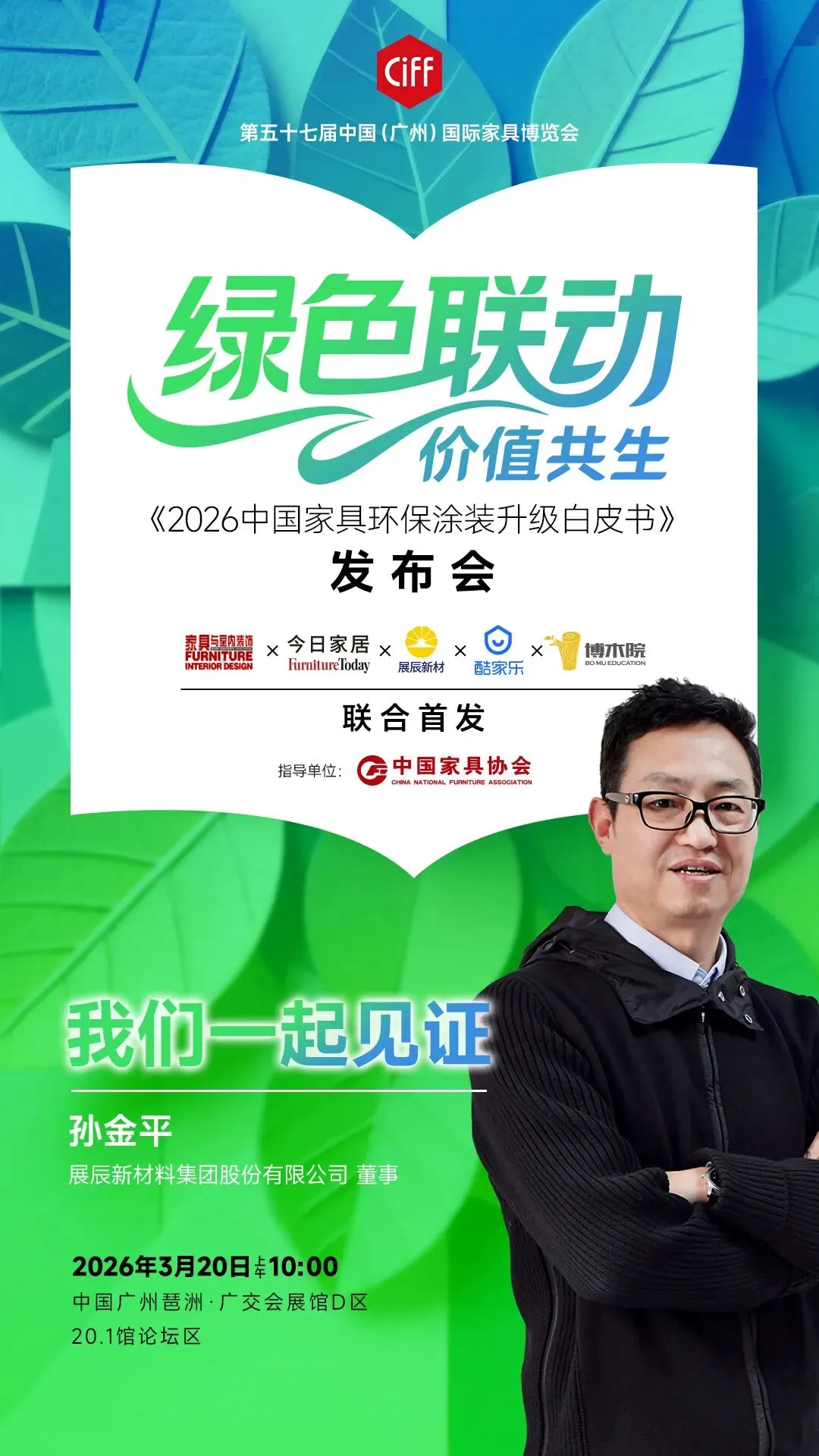 3月20日,在中国家具协会指导下,展辰新材将联合中国家具行业第一本全国中文核心期刊《家具与室内装饰》杂志、全球家居业商业指南《今日家居》、全球最大的空间设计平台酷家乐和家居产学研基地博木院,共同编制并发布《2026中国家具环保涂装升级白皮书》。