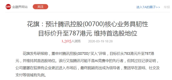 4.高盛等知名机构下修腾讯2026年调整后净利润增速从10%下调至7%,增幅收窄,成长股估值被打到价值股估值。