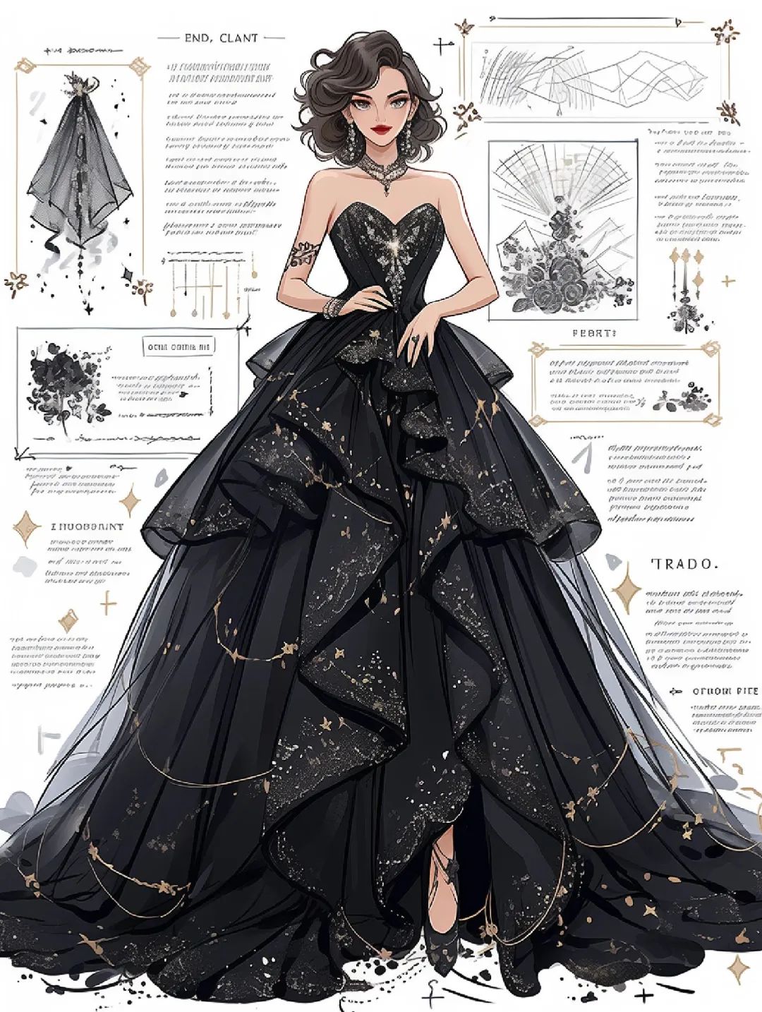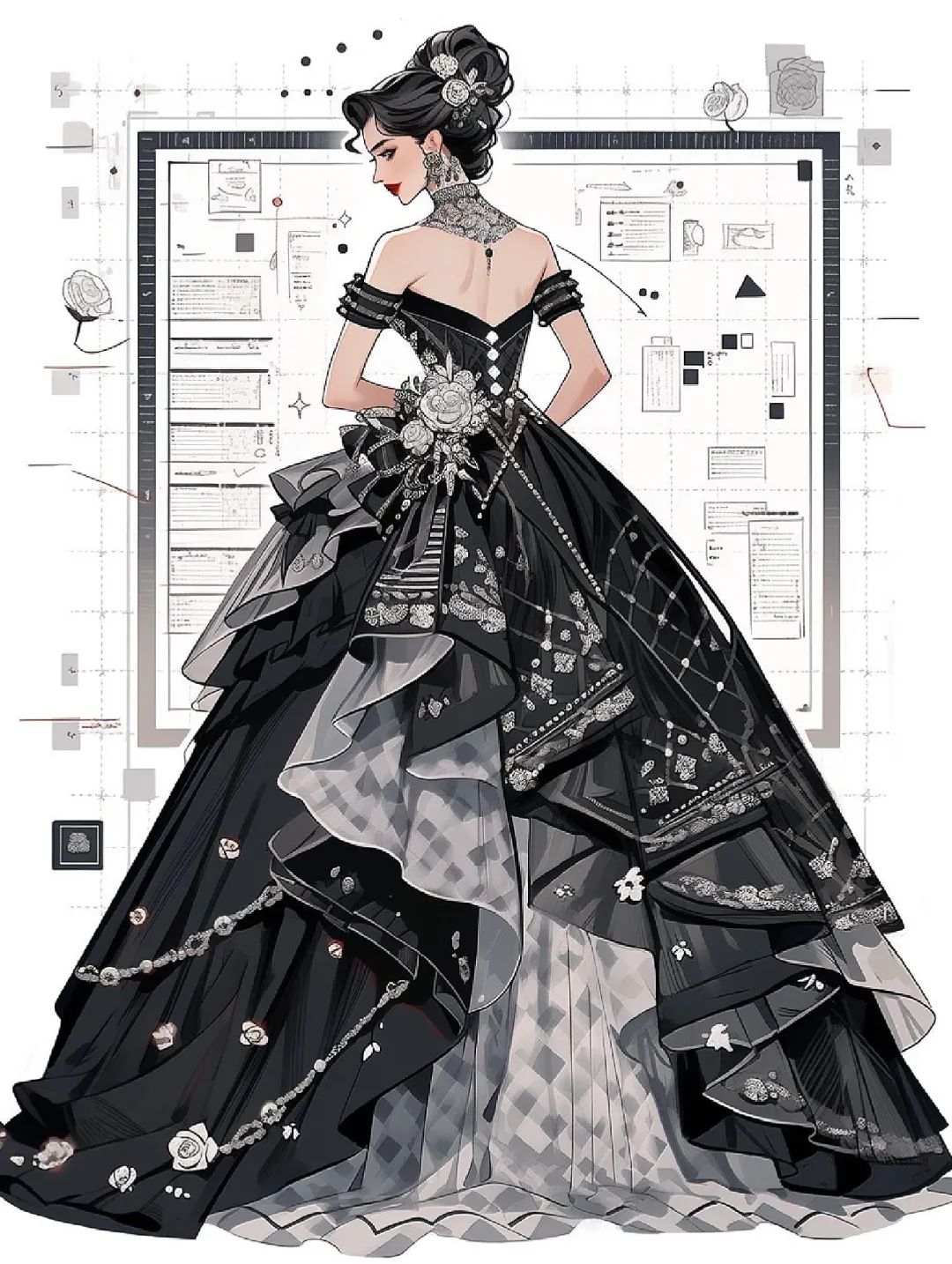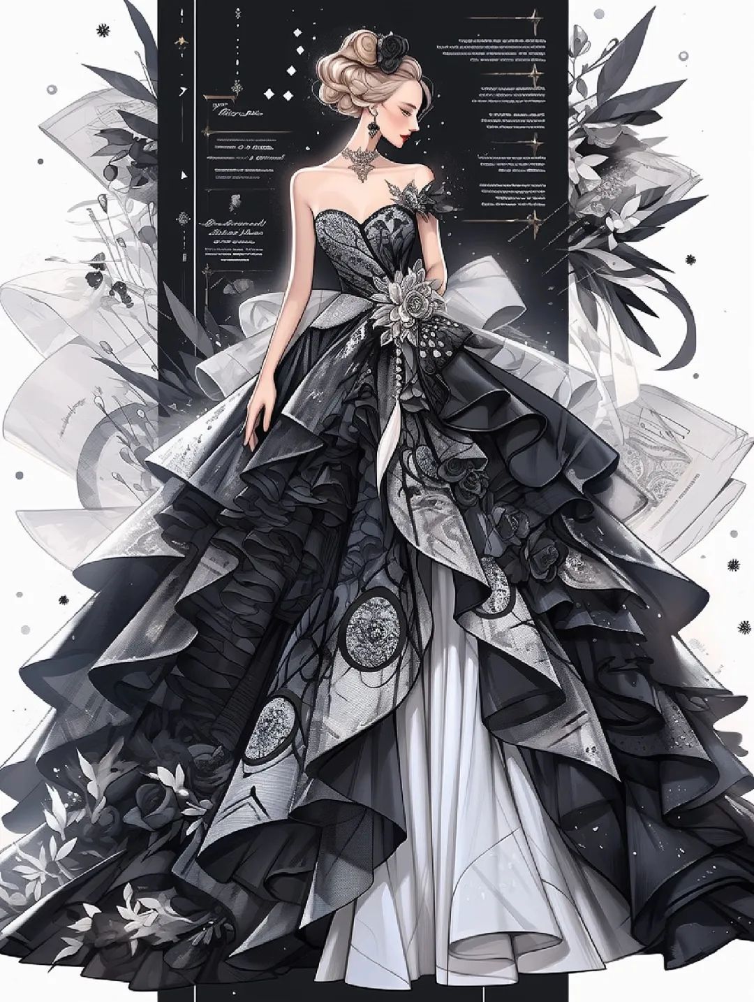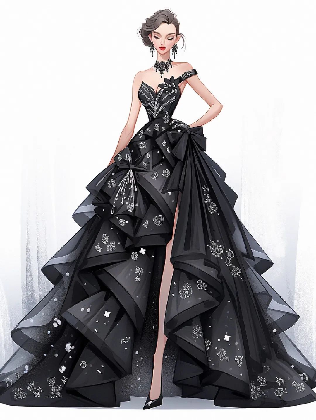 【服装设计图——时装效果图】黑红系列礼服
