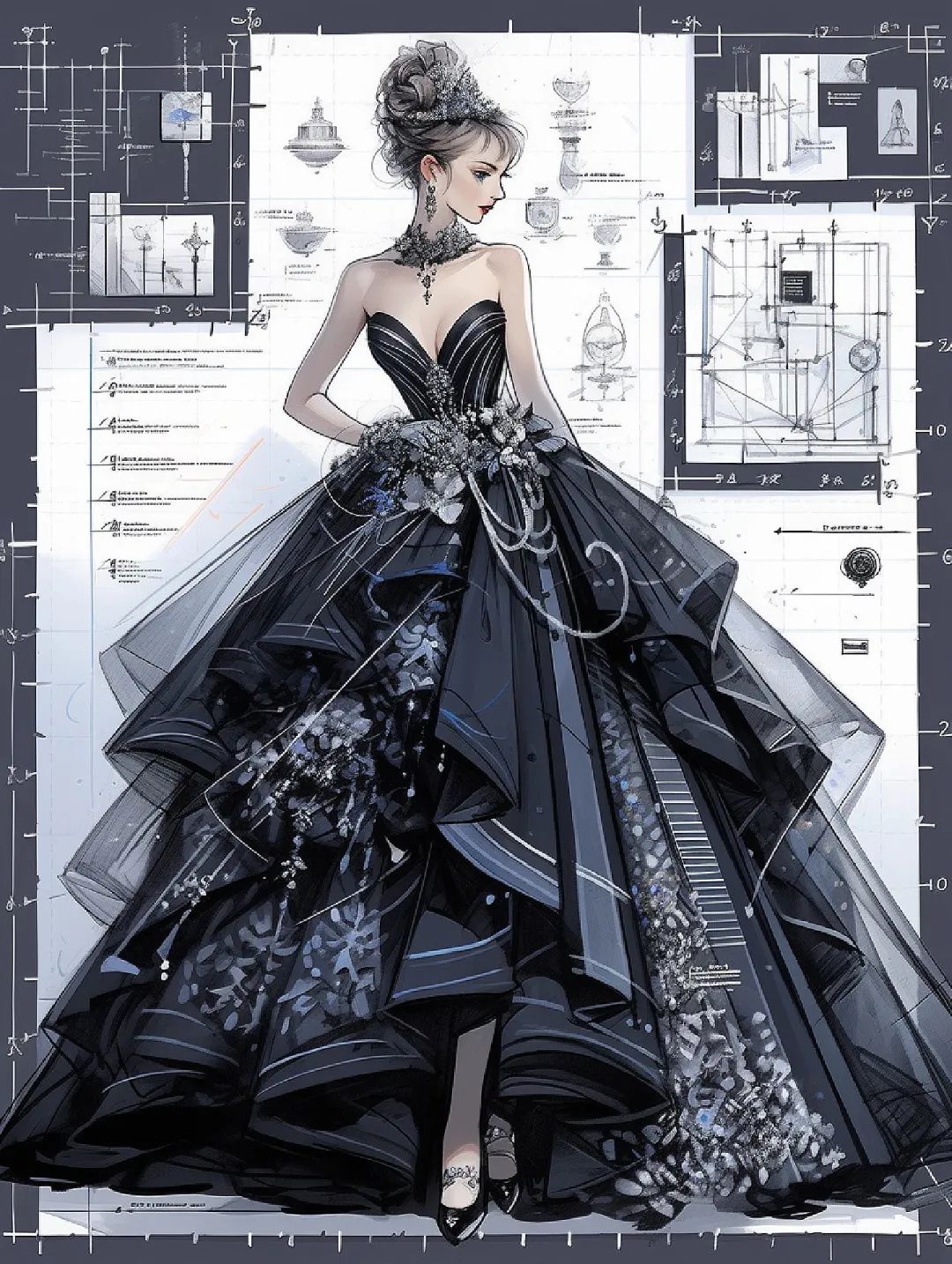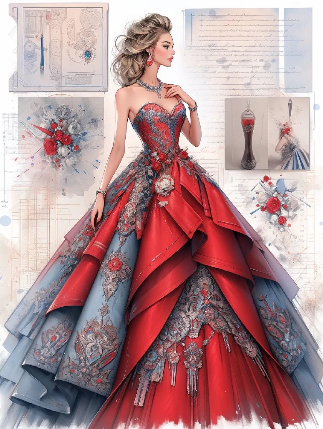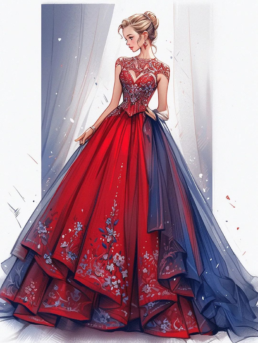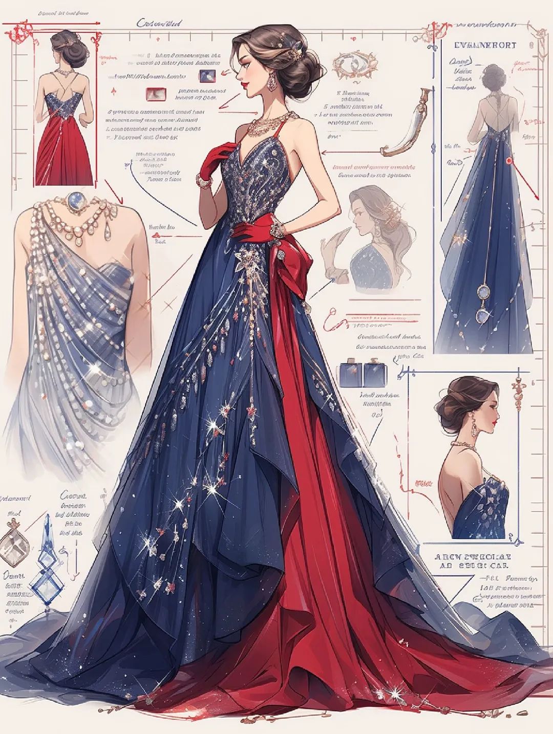 【服装设计图——时装效果图】黑红系列礼服