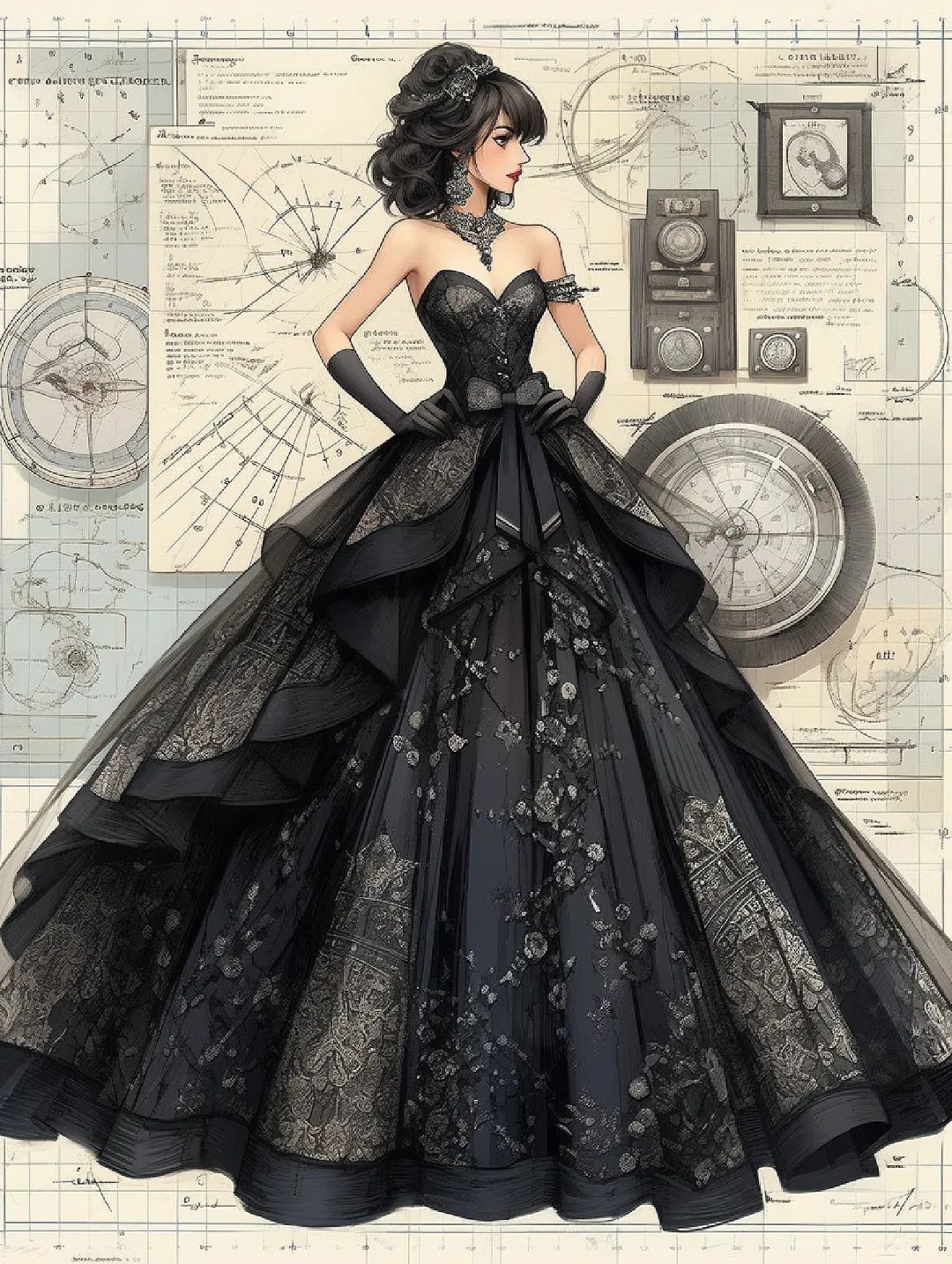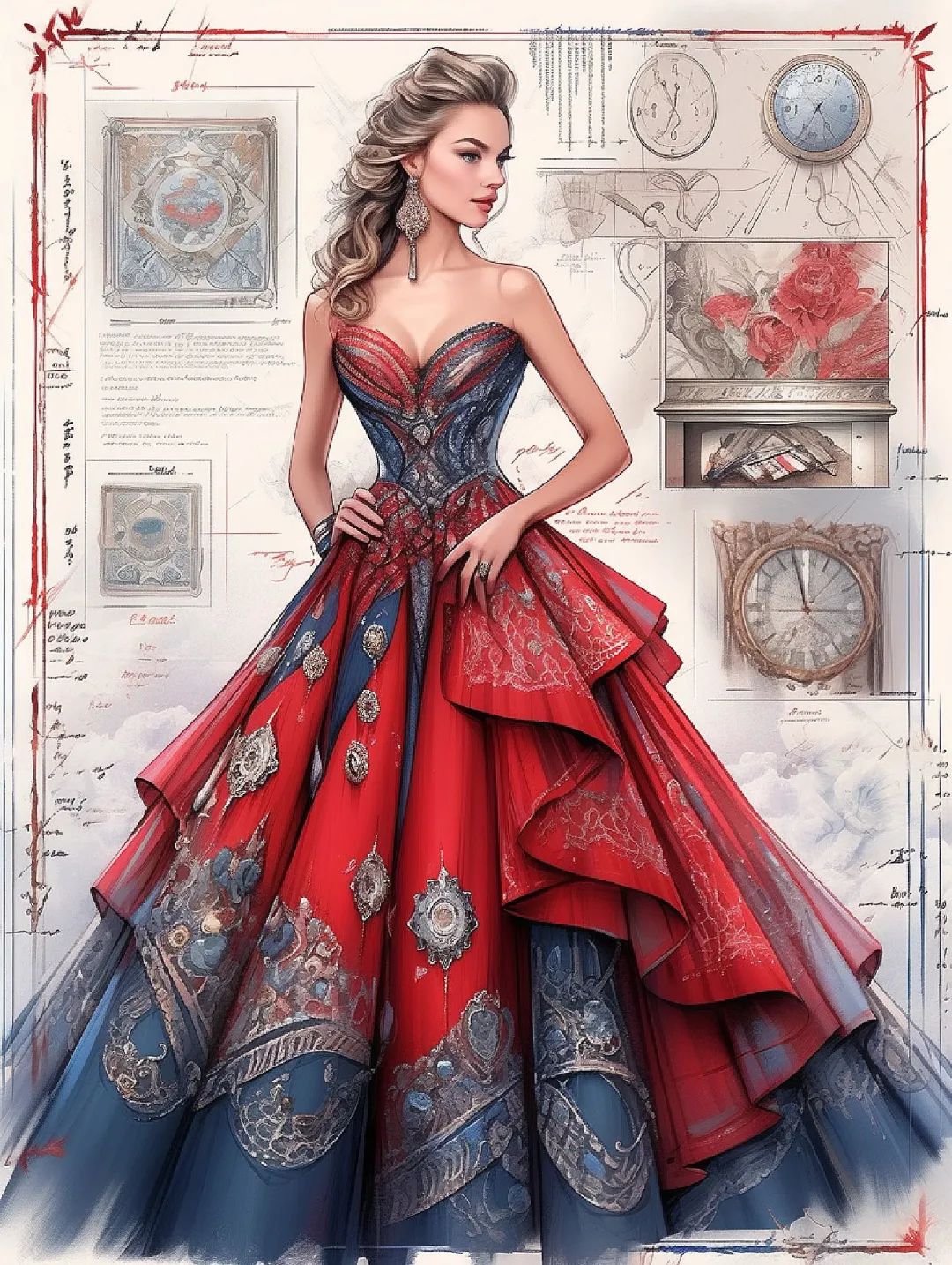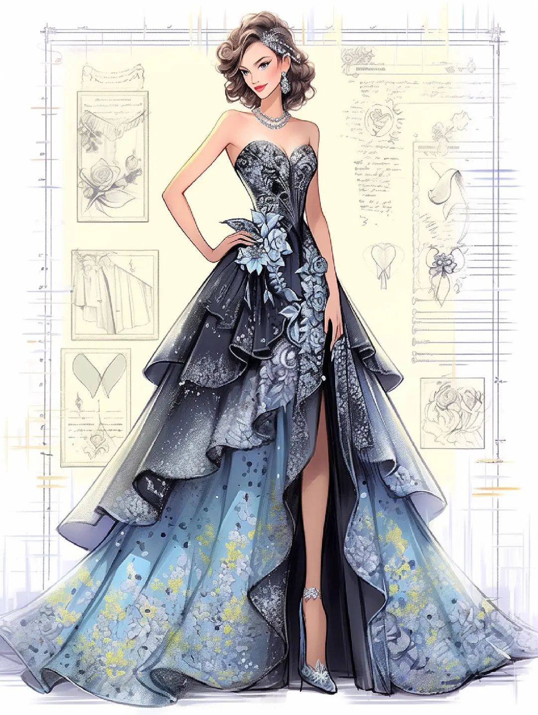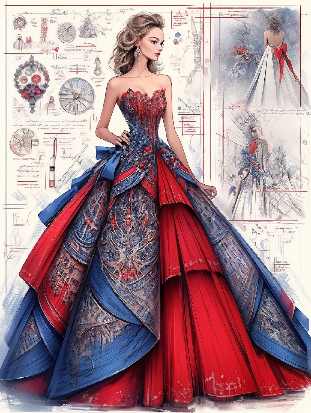 【服装设计图——时装效果图】黑红系列礼服