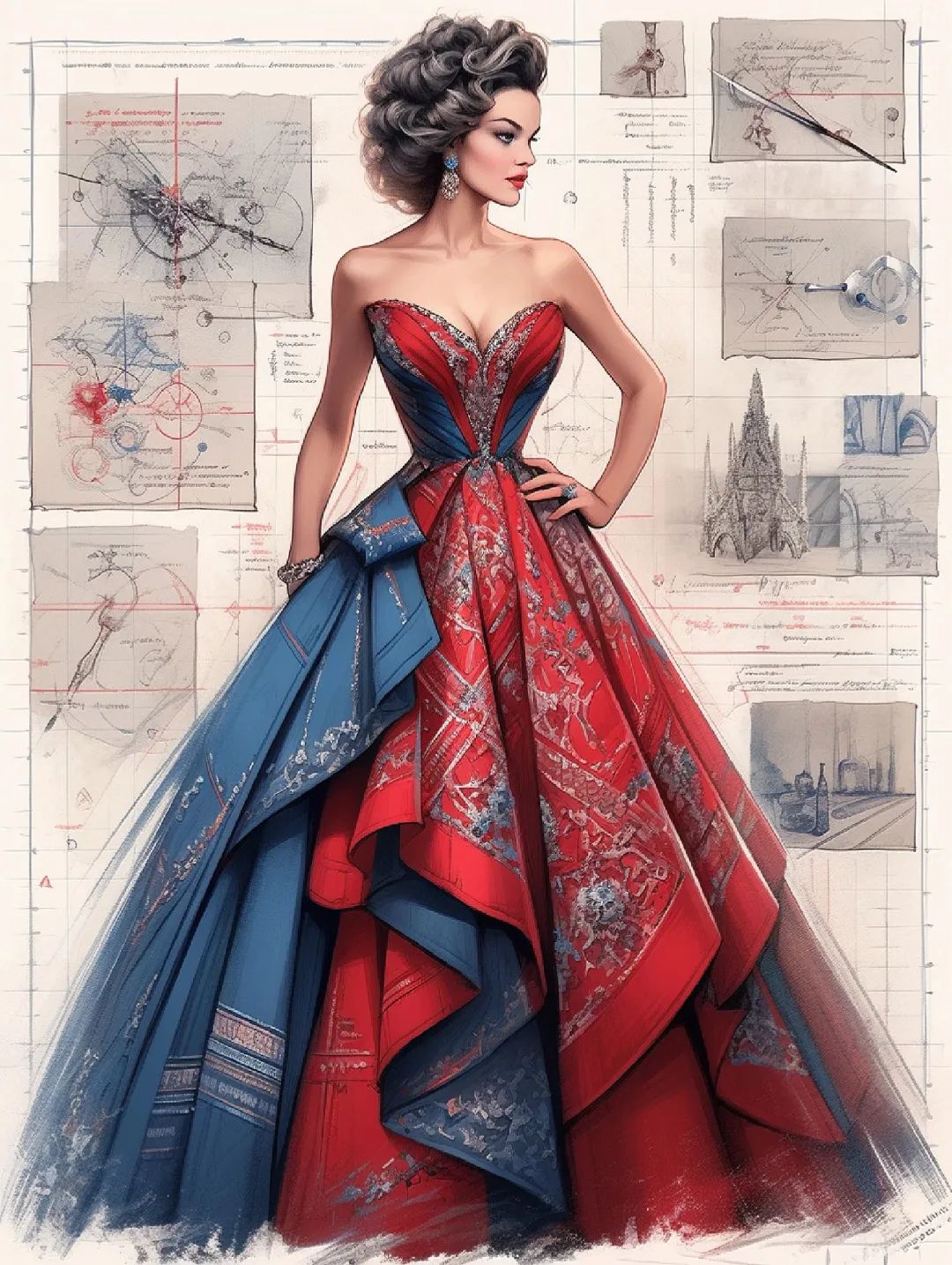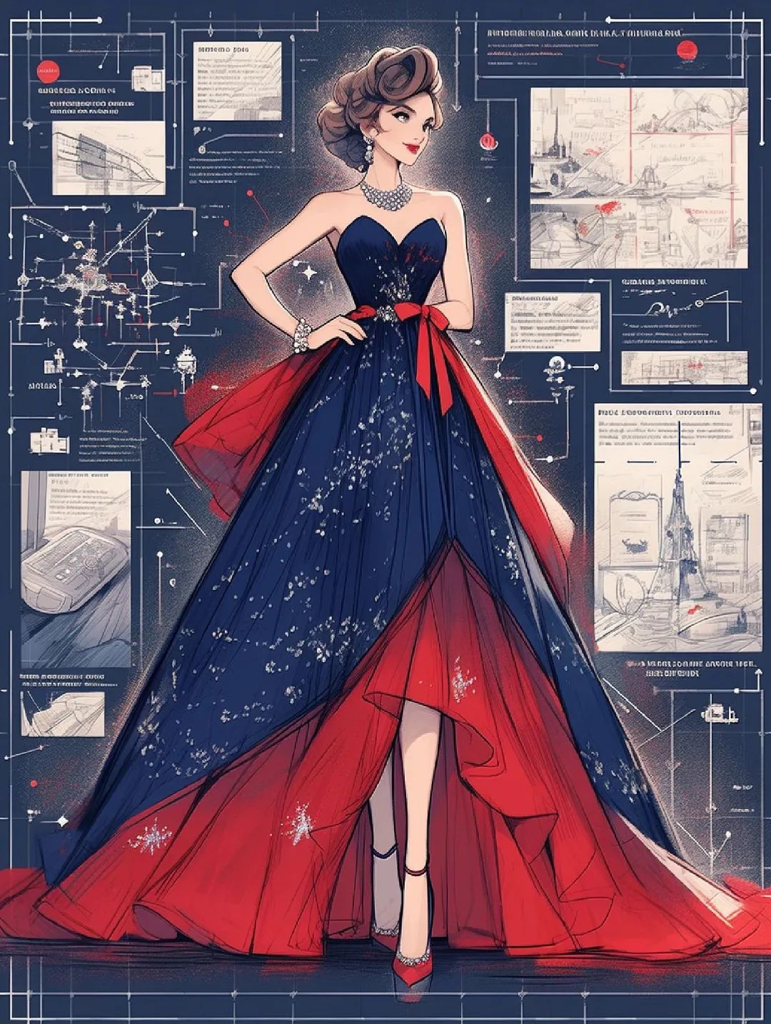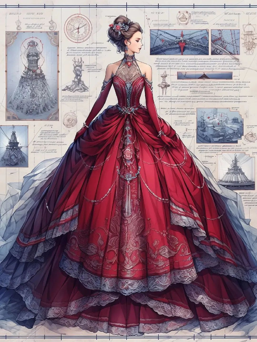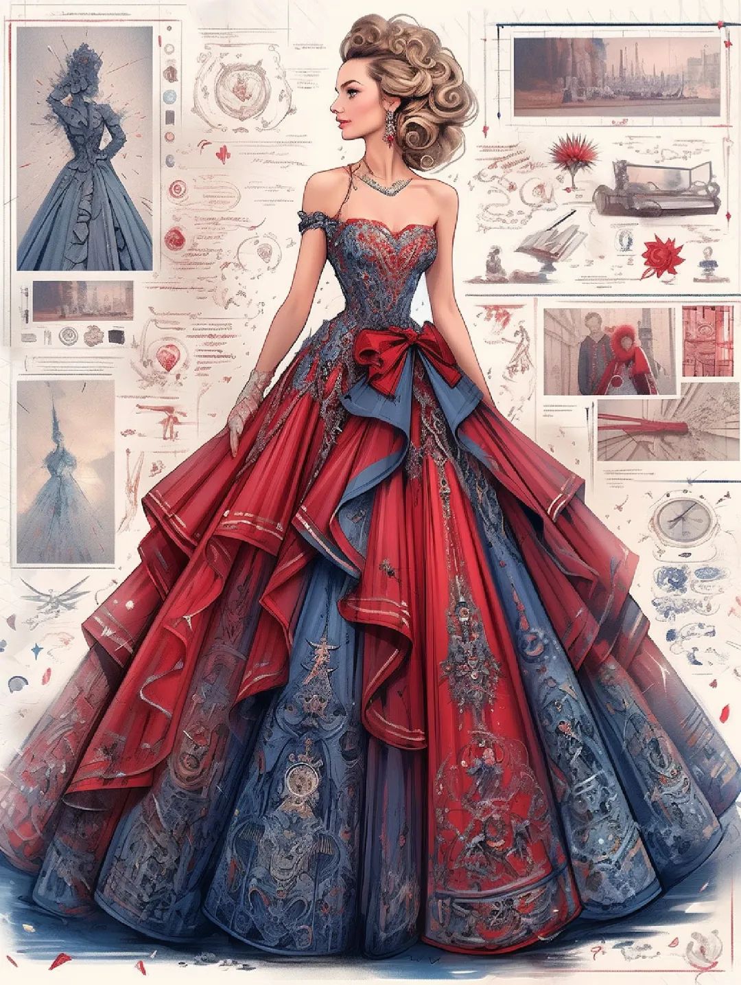 【服装设计图——时装效果图】黑红系列礼服