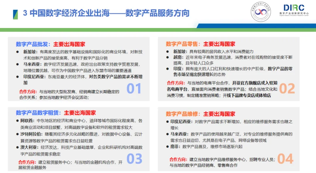 重点:未来中国数字经济企业将以发展中国家为突破口,依托“一带一路”深化合作,走合规化、本地化的全球布局之路,建议采取“农村包围城市”策略,强化合规建设与本地化运营,借力政策拓展多元海外市场。