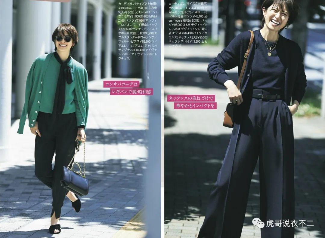 在裤装的选用上,大家优先挑选那些既可以包容腿型又可以包容大家配色能力的单品,宽松一点的黑色长裤,只要不破旧、不磨损,就能一直使用。