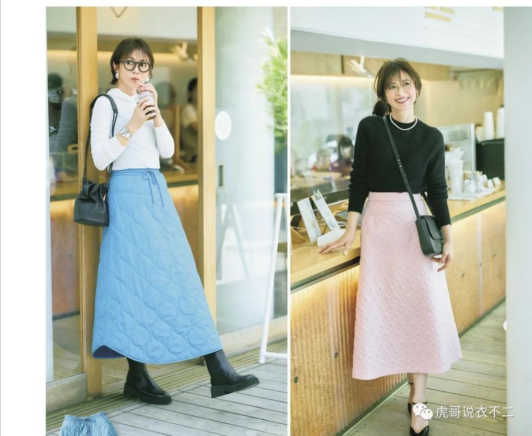 日系穿搭经常借用半身裙,构造出特别显气质的着装,可以找到多款上衣进行配合。