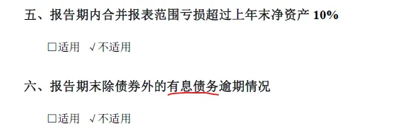 另外,有时候我们会说有息债务,包括上市公司年报披露的模板里,有一节是“债券相关情况”,其中有一条是披露“报告期末除债券外的有息债务逾期情况”,以万科2023年报为例,具体格式如下: