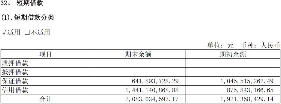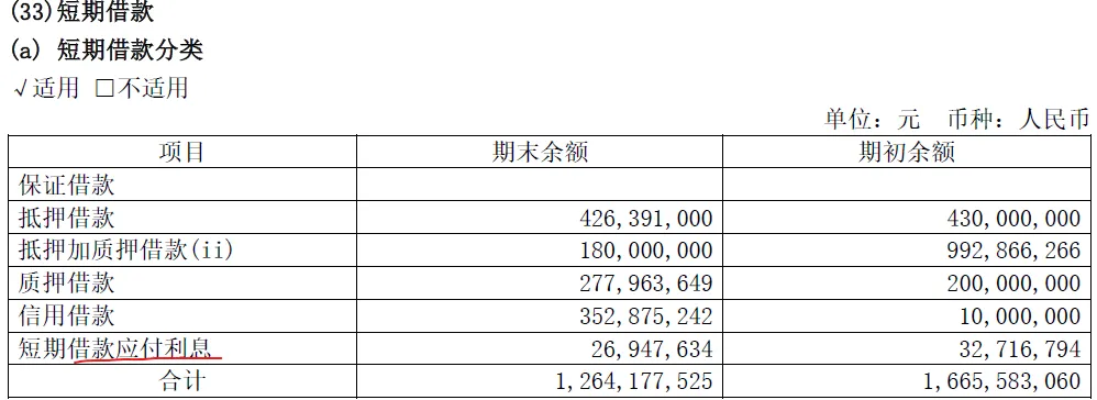 对于非房企类上市公司,也是类似的披露格式,以陕煤集团下属上市公司建设机械为例,2023年报中披露的短期借款附注如下: