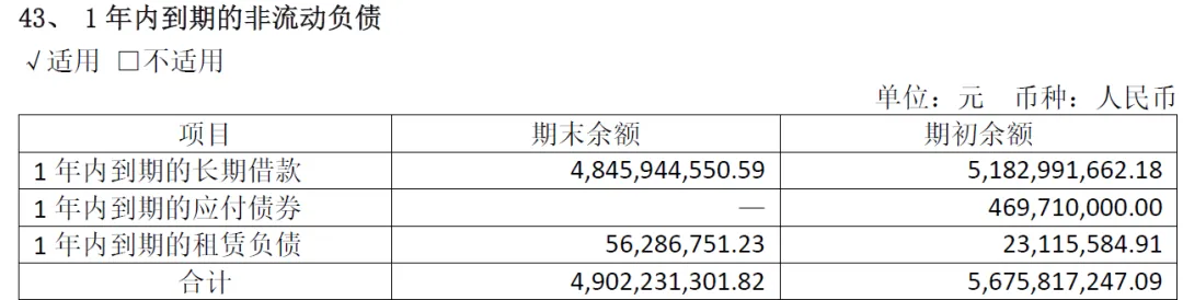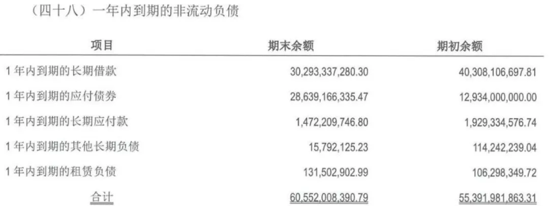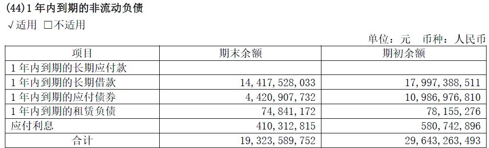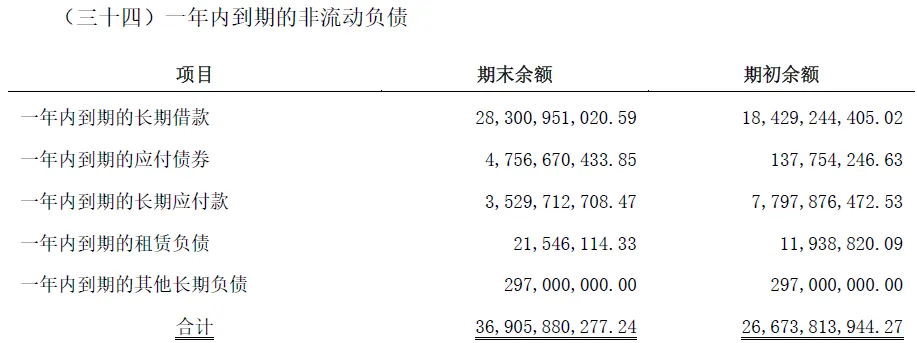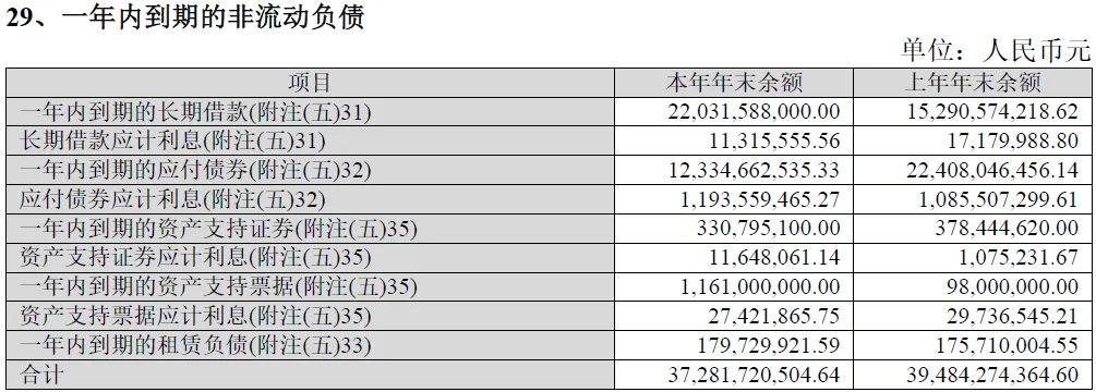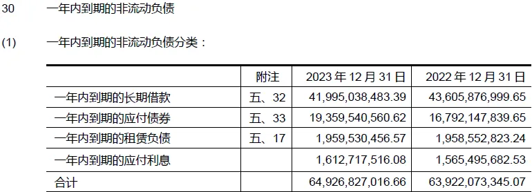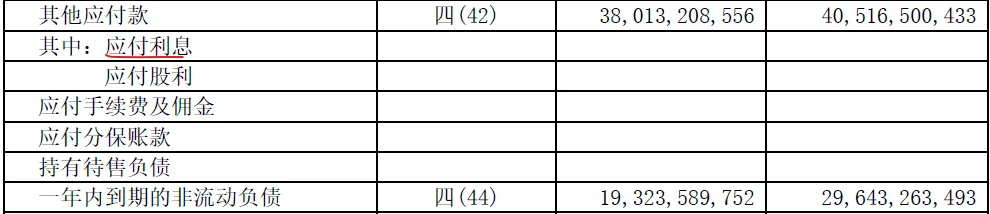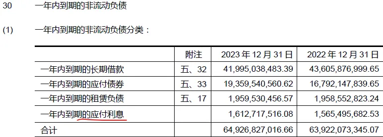 一年内到期的非流动负债如下,也没有体现出应付利息: