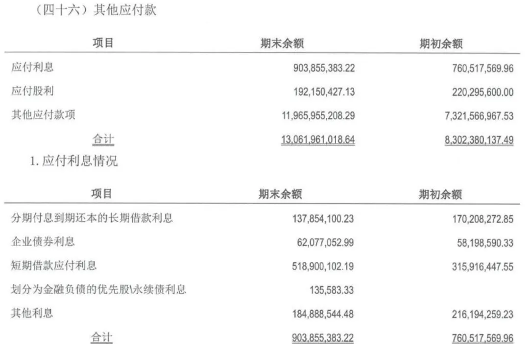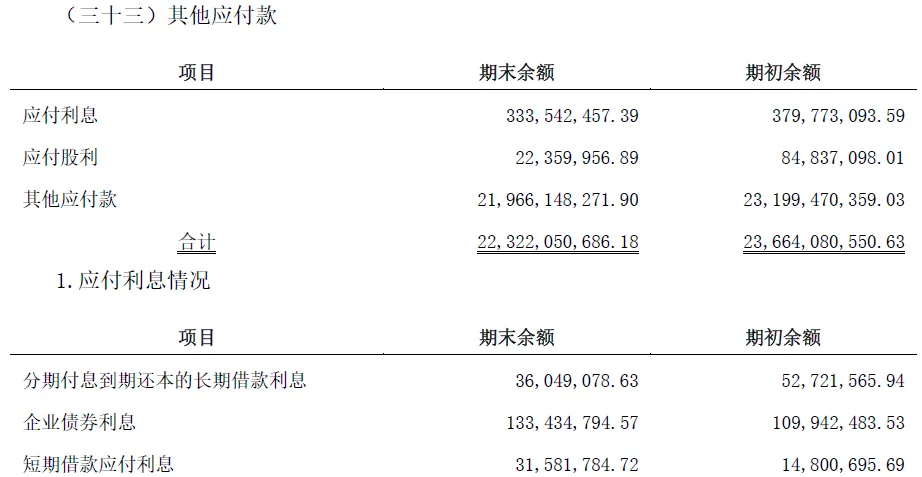 举例2:陕西省最大的国企陕煤集团,上市公司陕西煤业的母公司,也是发债主体,2023年审计报告中其他应付款中“应付利息”明细如下: