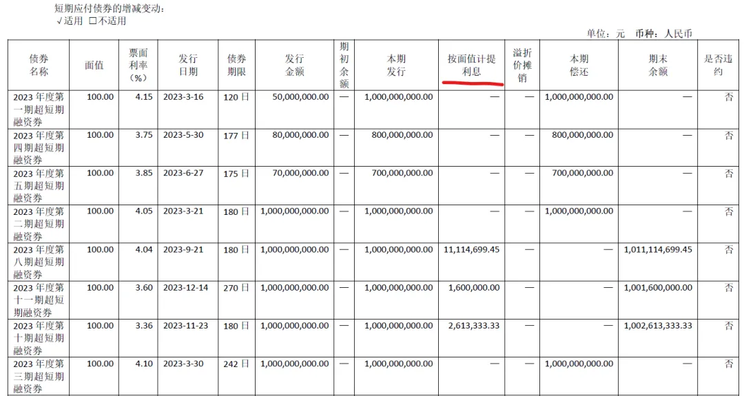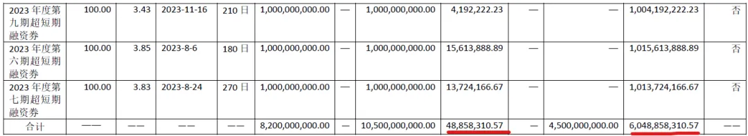 但短期应付债券的利息没有在附注中单独列出一行,而是体现在“短期应付债券”的余额60.49亿中。短期应付债券明细如下: