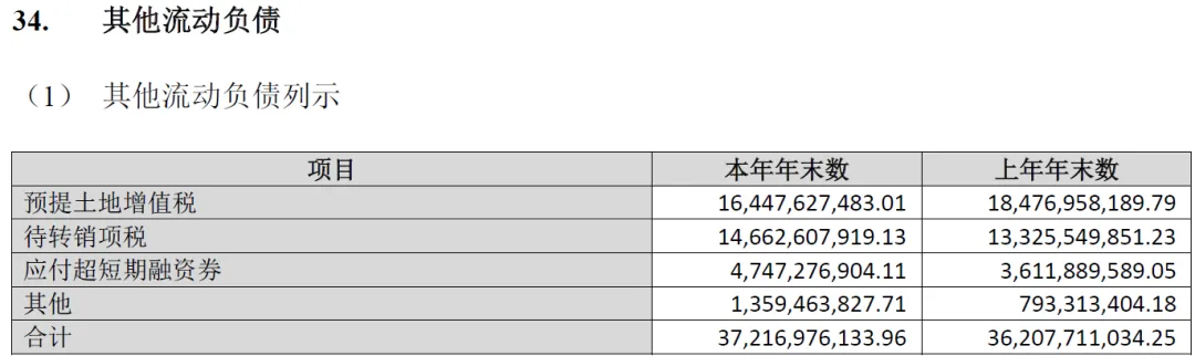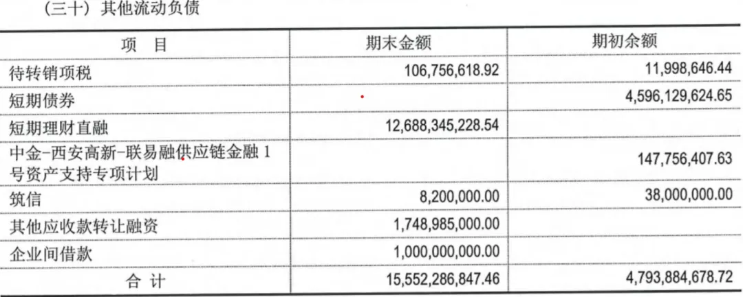 举例3:西安市高新区主要的城投企业西安高新控股有限公司,也是发债主体,2023年报其他流动负债附注如下: