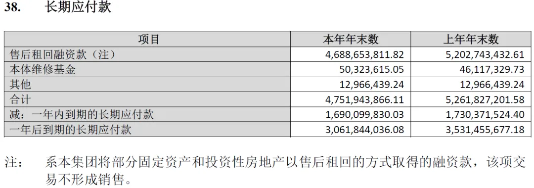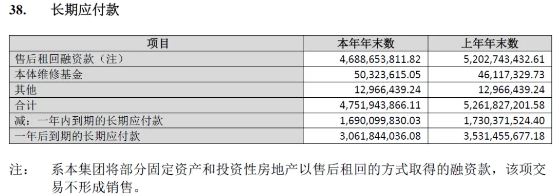 举例2:陕西省属上市公司建设机械2023年报长期应付款中同样有“售后回租融资款”。