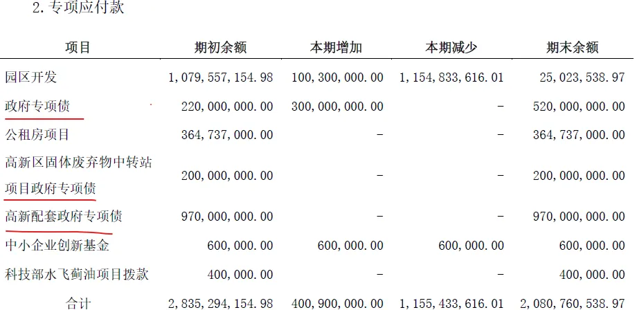 从专项应付款明细中可以看出,高科集团的政府专项债合计5.2+2+9.7=16.9亿。