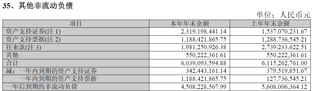 一年内到期的非流动负债中,把资产支持证券、资产支持票据的本金、利息分开做了披露。