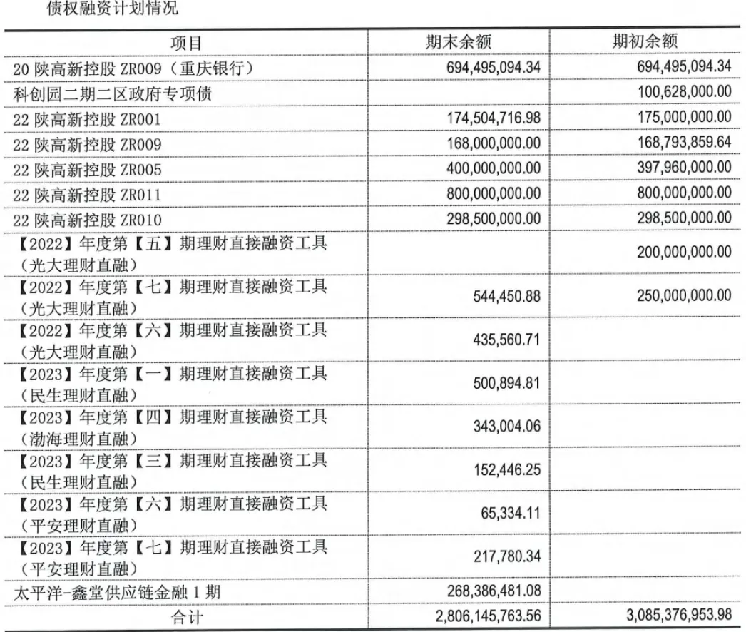 西安高新控股作为非上市企业,又是地方开发区下属国企,融资方式比较多元化,这里披露的债权融资计划中,ZR009等编号中带“ZR”的是北金所债权融资计划(债务人在北京金融资产交易所发行债权融资计划,由投资人认购),“ZR”是债融首字母大写。