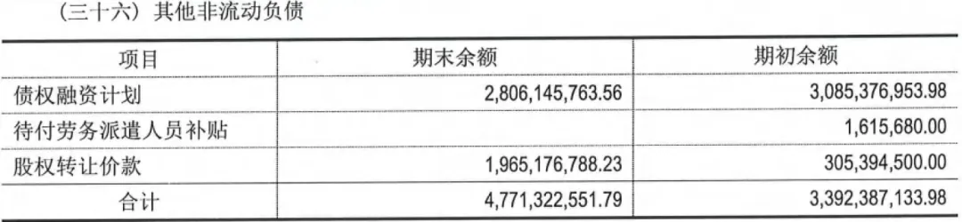 举例3:西安高新控股有限公司2023年其他非流动负债中包括“债权融资计划”28.06亿元为有息负债。